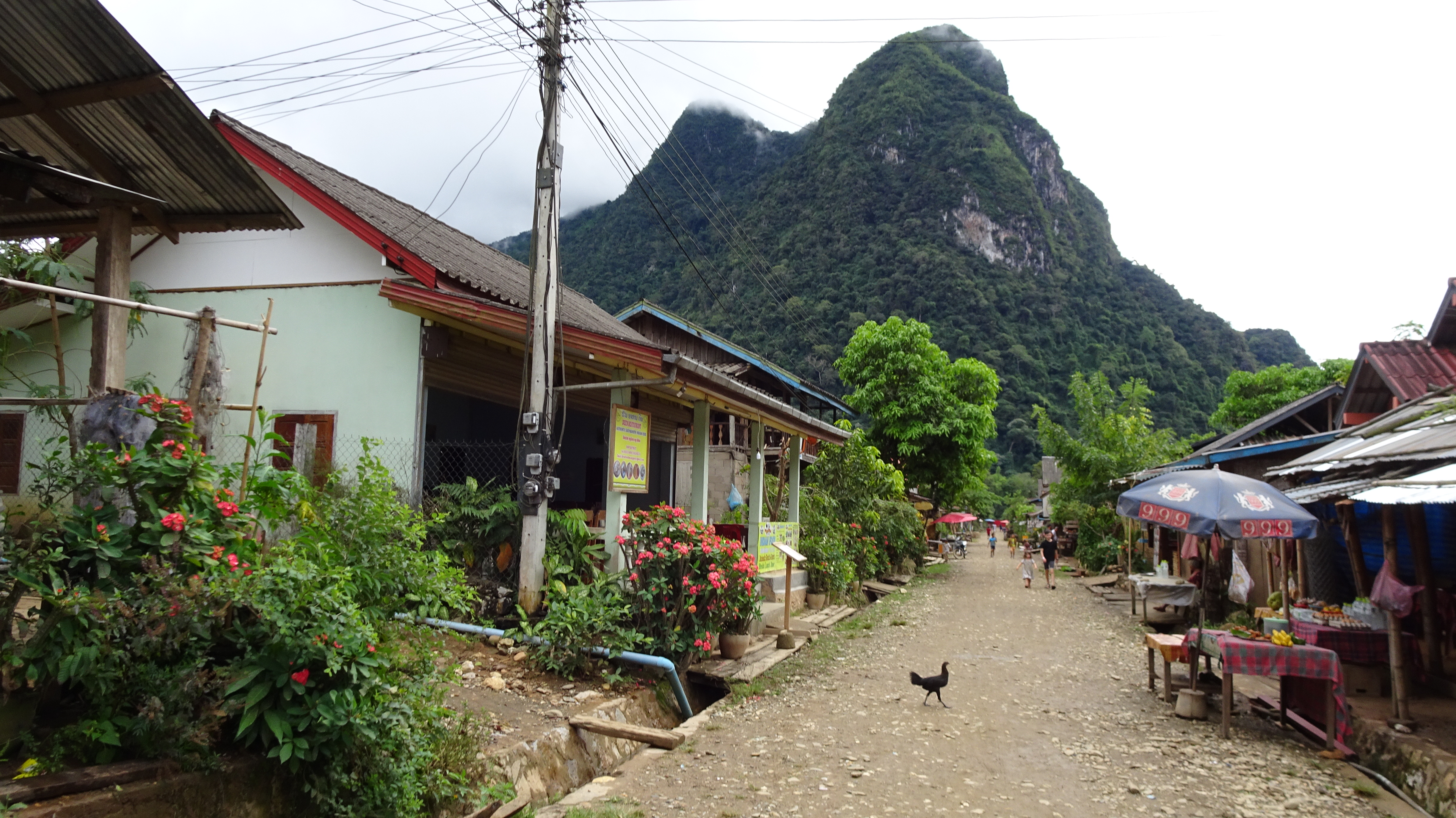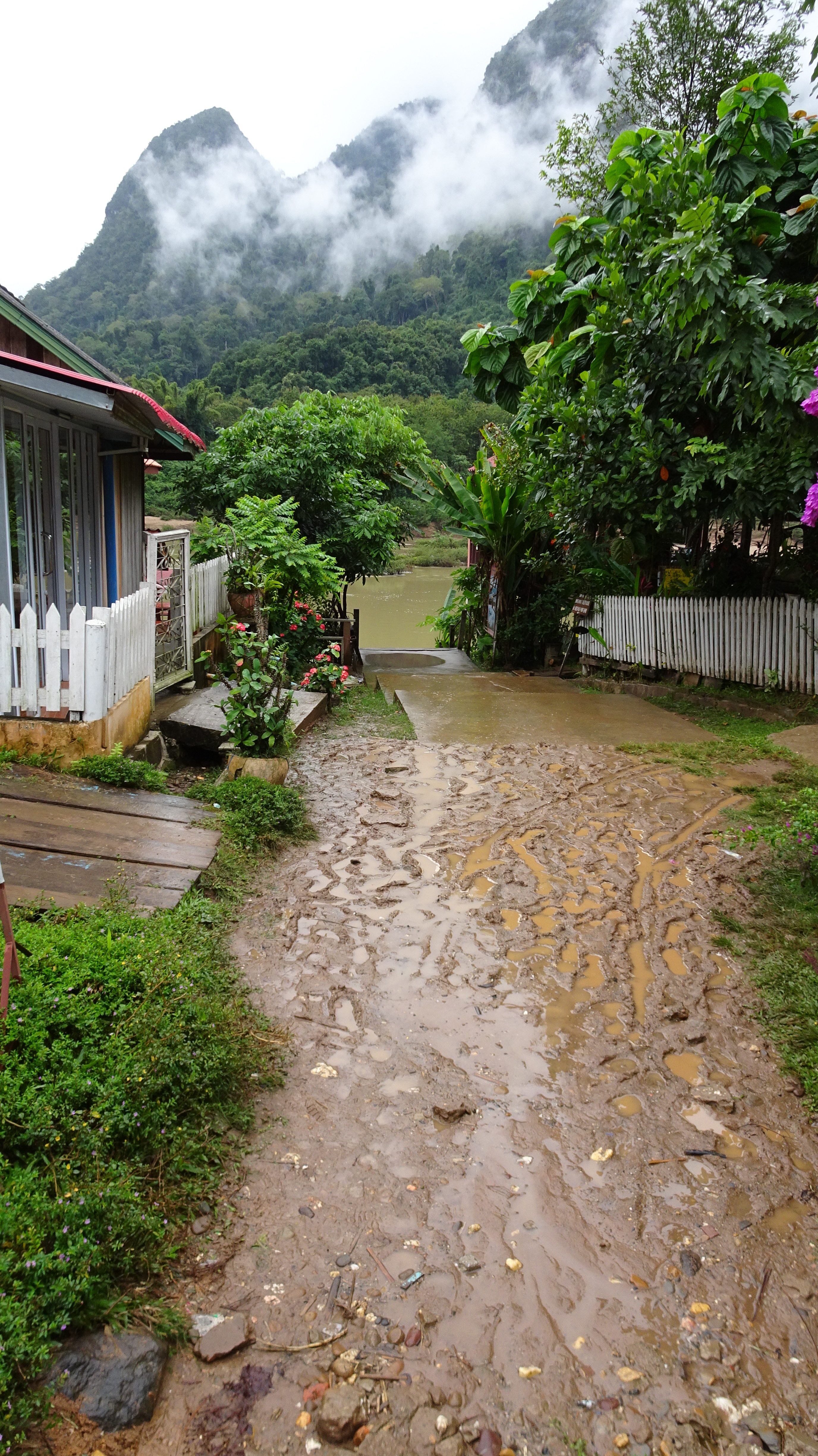 Bilderbuch am 225. Radweltreisetag in Muang Ngoy, nachts Dauerregen, tags sonnig und schwül, ideales Ruhetagswetter