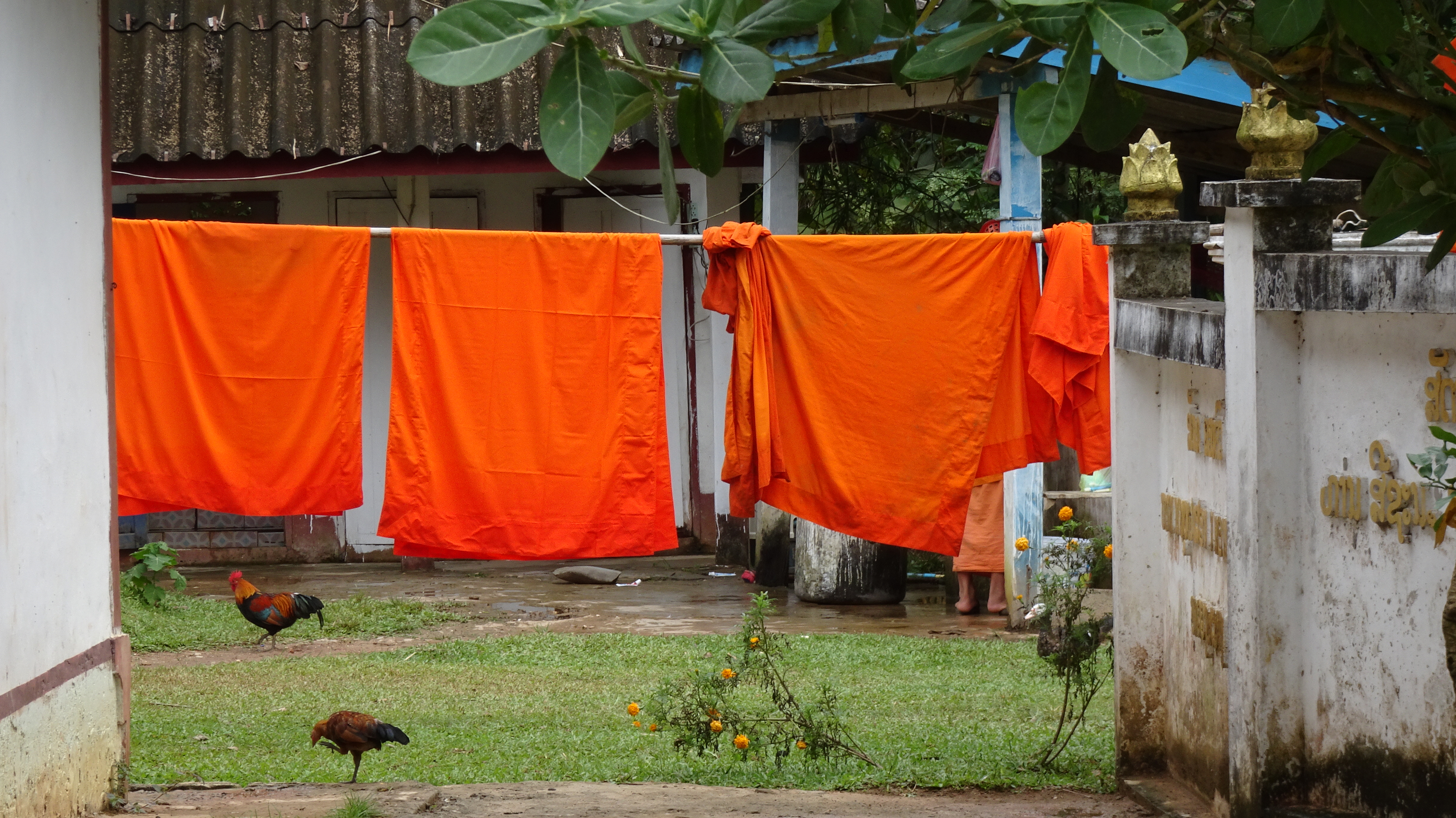 Das Tagesziel Nam Thousam, welches außer einer Übernachtungsmöglichkeit nichts erwähnenswertes zu bieten hat, erreichen wir schon am frühen Nachmittag und nutzen die verbleibende Zeit den Fahrrädern Pflege zuzuwenden und der allseits ungeliebten Tätigkeit nachzukommen die Wäsche zu reinigen…