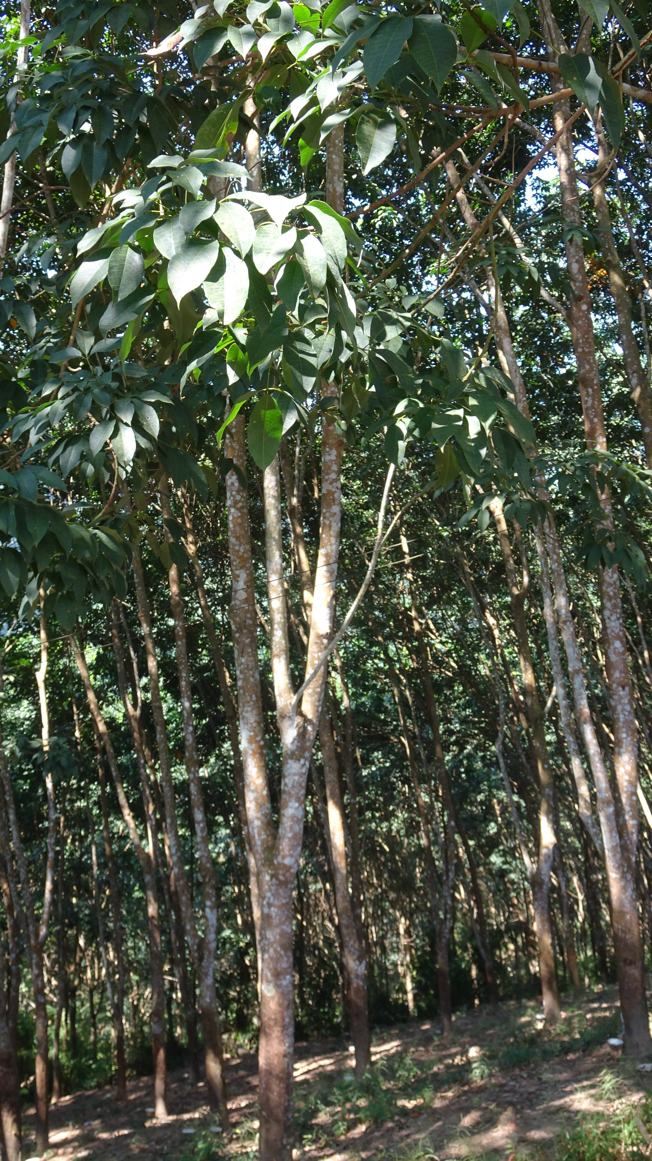Die Kautschuk-Plantage drumherum gehört ebenfalls zum Tempel und die Mönche verwenden den Verkaufserlös daraus u.a. für den Aufbau des neuen Tempels unterhalb der Stupa.