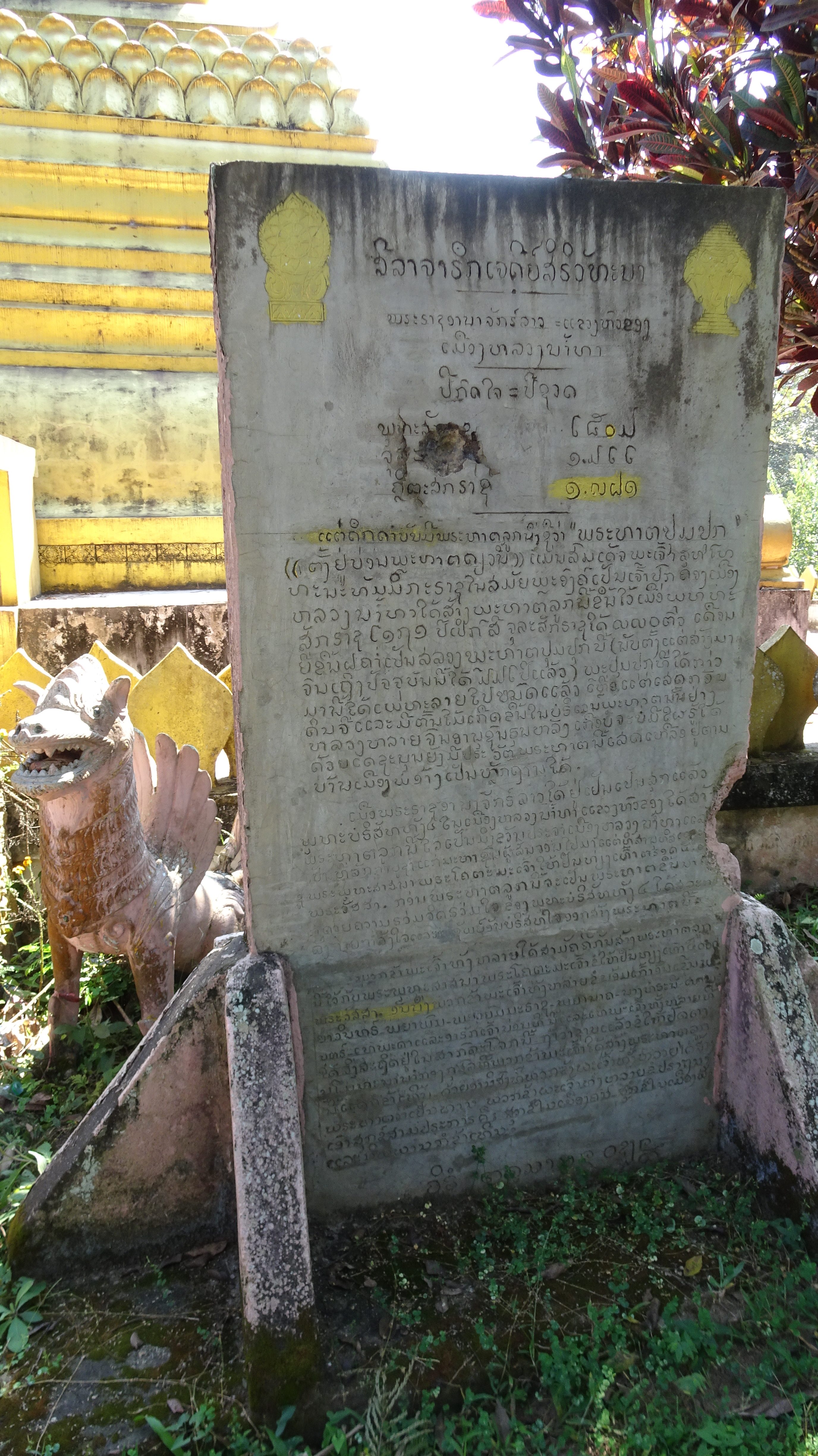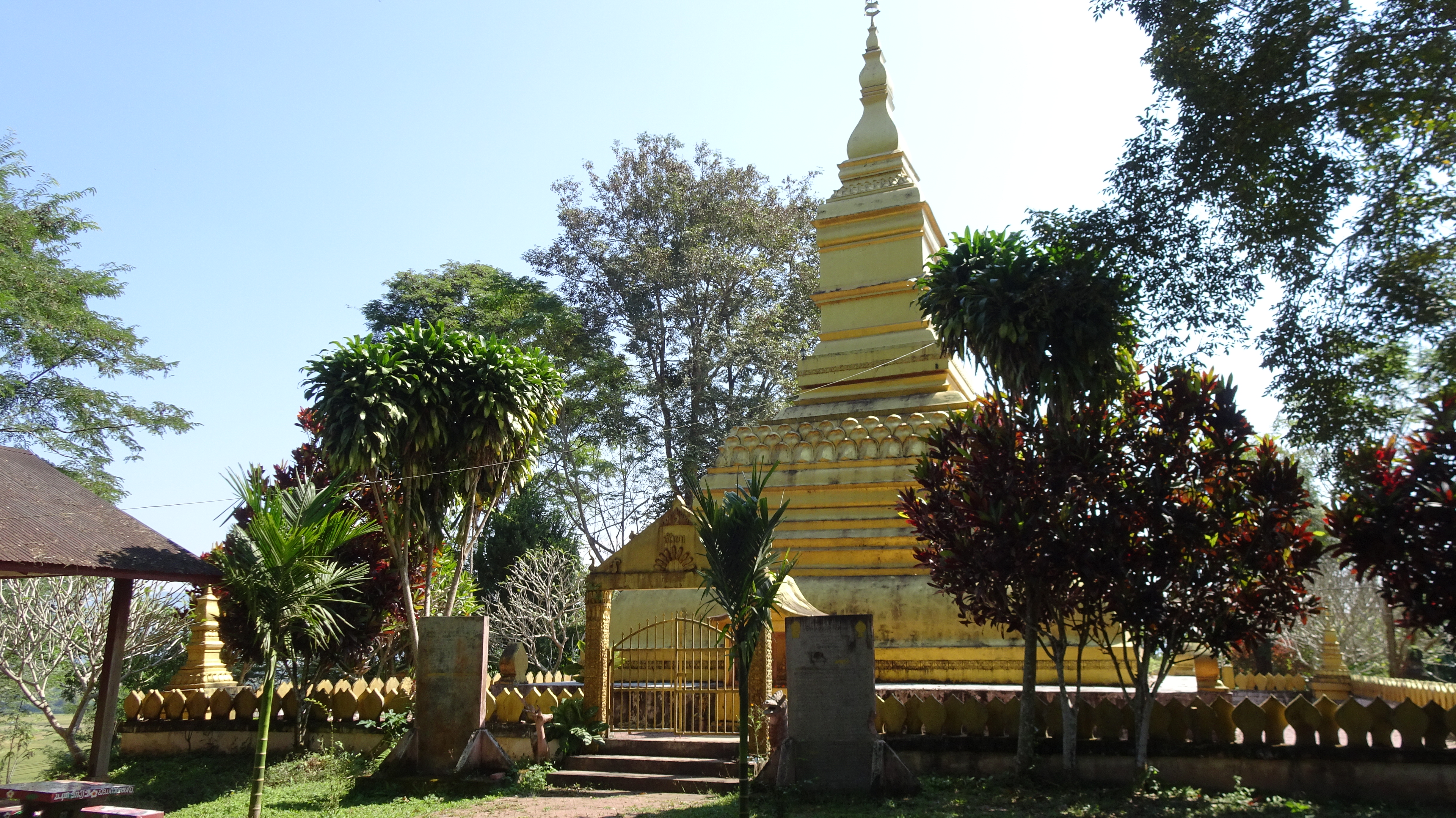 Sie wurde 2009 mit Spendengeldern der Bevölkerung und verschiedener Organisationen der Umgebung mit der großen Stupa in Vientiane als Vorbild errichtet, aber halt ein wenig kleiner. Zum jährlichen Stupa-Festival im Dezember treffen sich hier immer viele Gläubige.