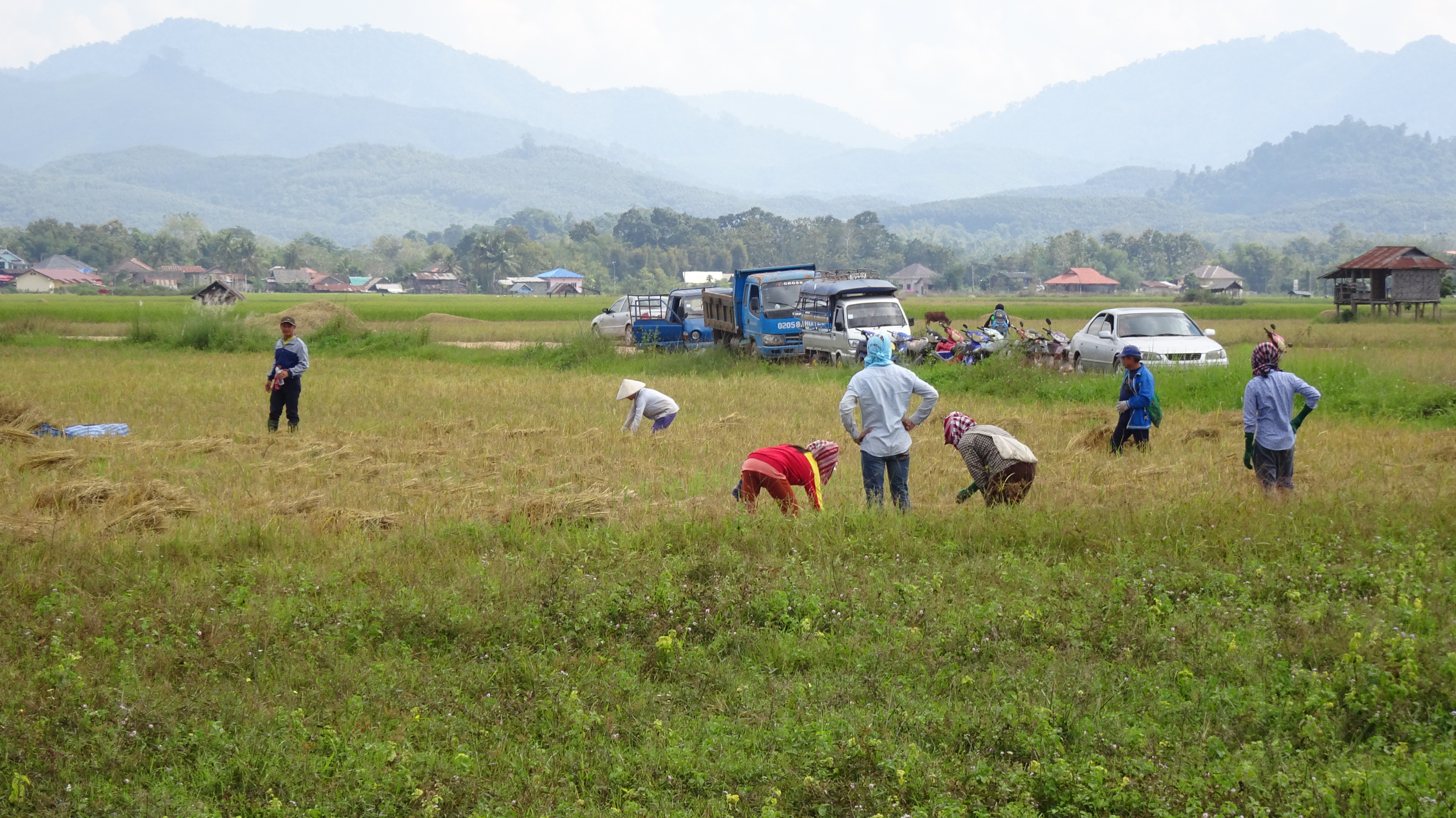 „Heute wahlweise Ruhetag oder fakultativer Rad-/Wanderausflug durch die fruchtbare Ebene voller Reisfelder. Unter anderem besteht die Möglichkeit, Seidenweberdörfer zu besuchen.“, bietet das Reiseprogramm an. Wir entscheiden uns (fast alle) für beides.