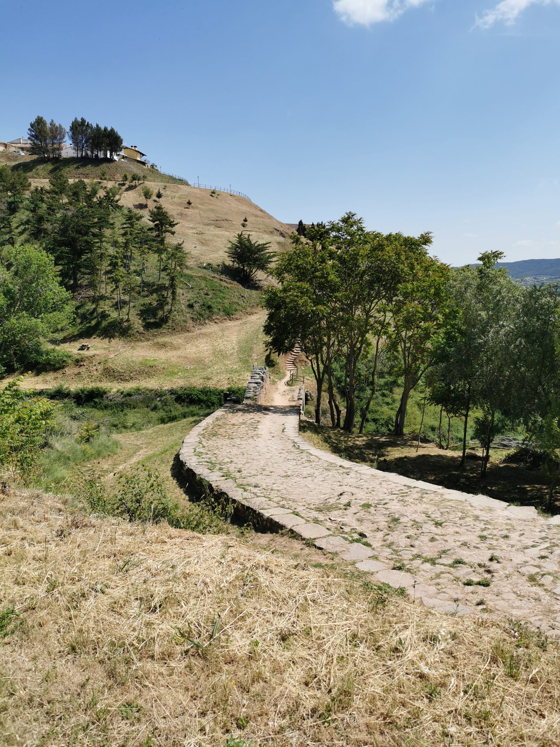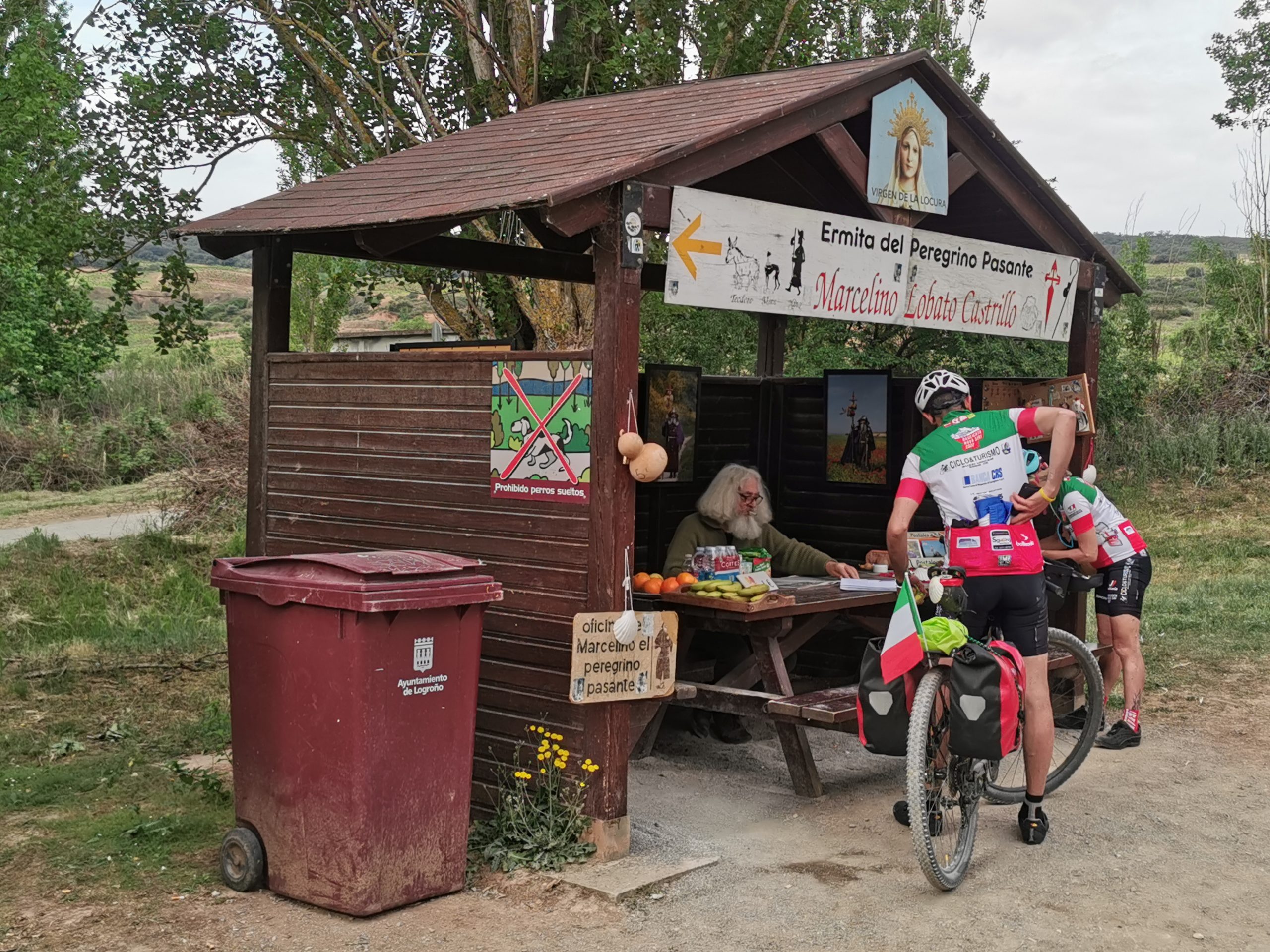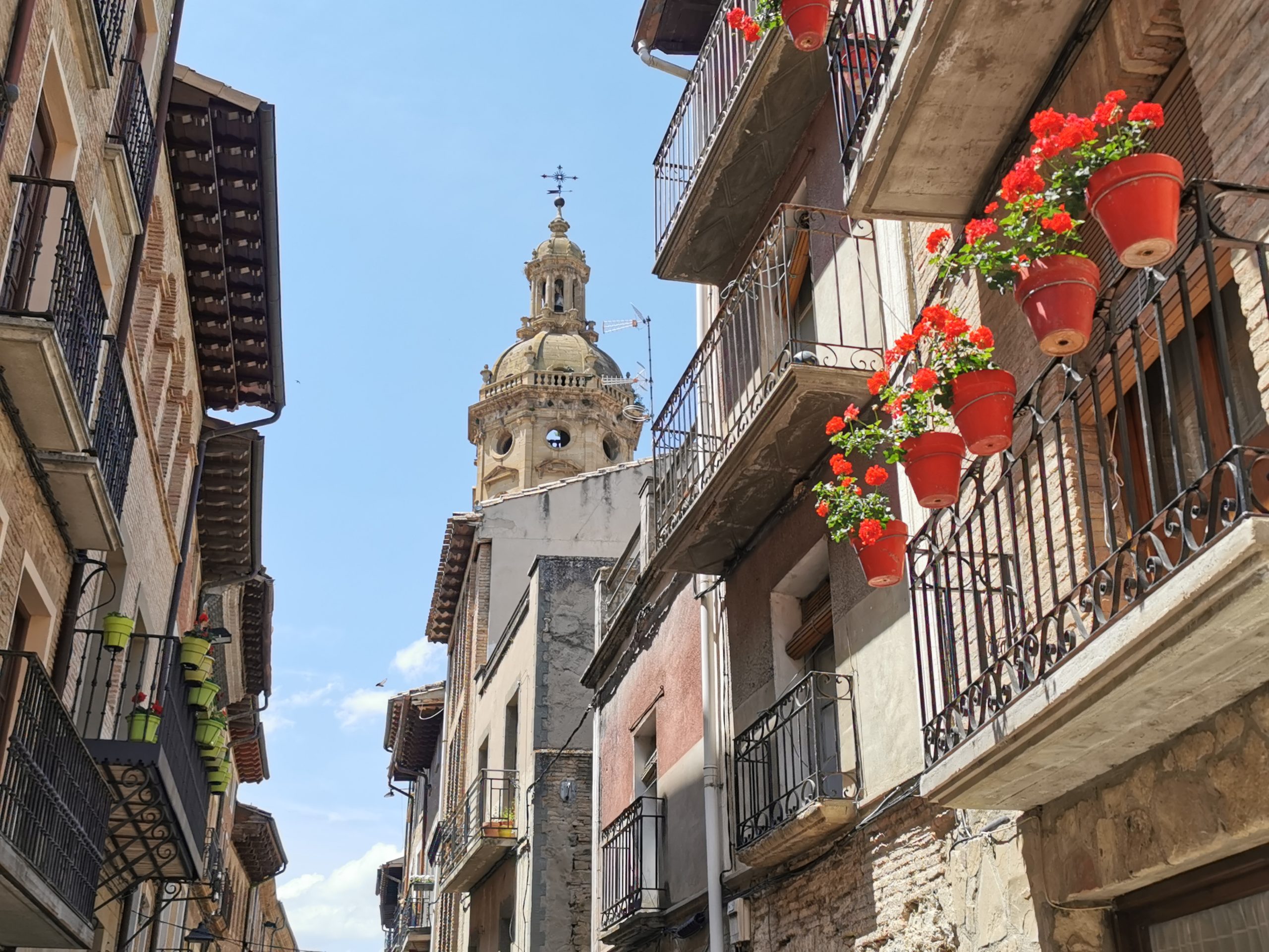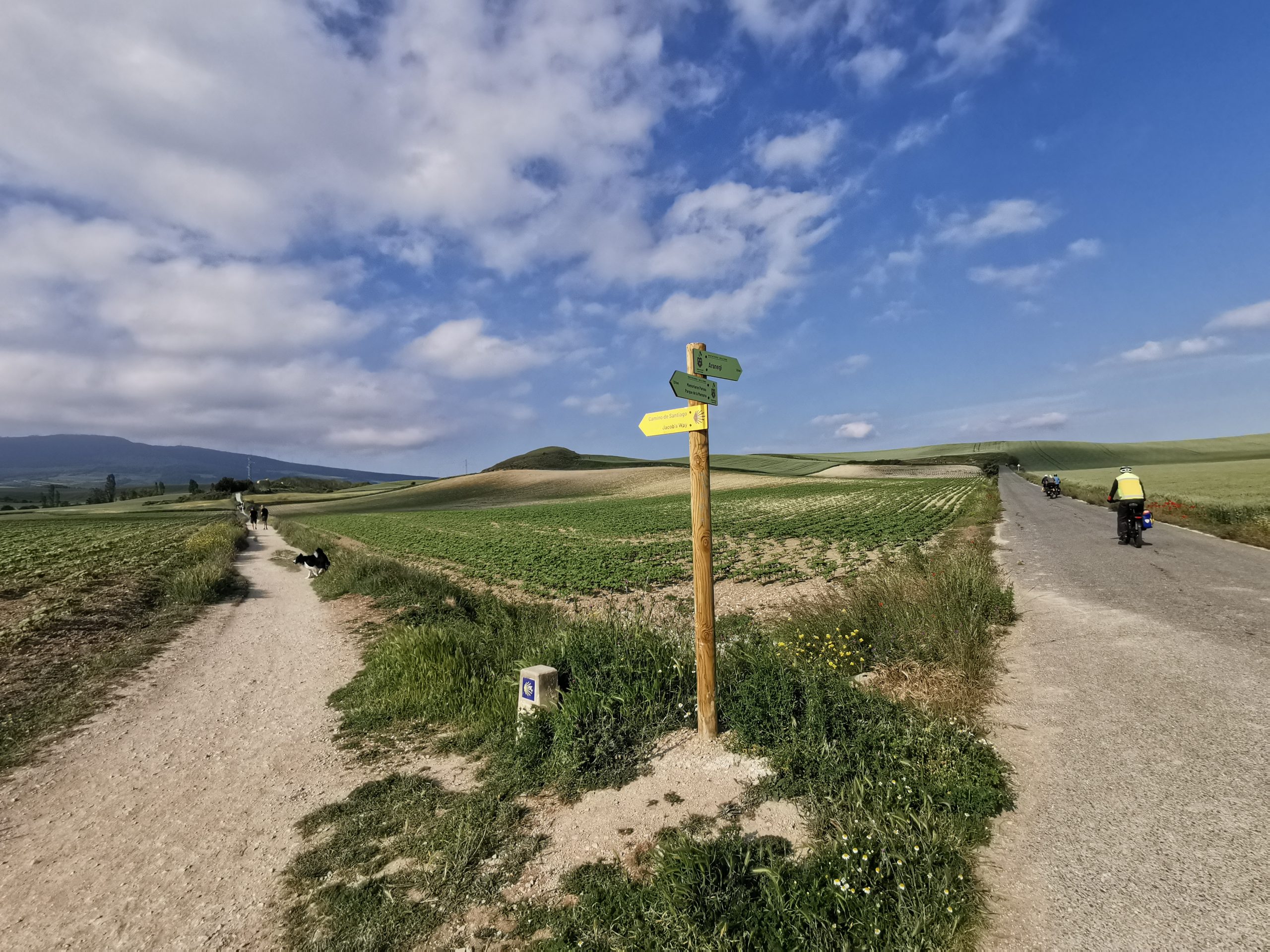 Nach dem morgendlichen Umtrunk geht es dann zwei Tage über eine weite Hügellandschaft über Logroño und Santo Domingo de la Calzada nach Burgos. Das ist meist schön, die Straßen sind leer und die nicht-asphaltierten Wege gut zu fahren. Immer mal wieder kreuzen wir den Wanderweg, treffen den einen oder den anderen Pilger wieder. Die Ausfahrt aus Logroño ist gewohnt gut erschlossen und die N-120 zwischen Villafranca Montes de Oca und kurz vor Burgos bringt mich, die Gruppe und mit uns alle anderen Pilger, ob auf dem Rad oder zu Fuß zur Verzweiflung. Es kann doch nicht so schwer sein, dieses Stück endlich einmal zu entschärfen, damit man danach nicht mit zitternden Händen und Tinitus in Burgos ankommt. Oder ist das Teil der Prüfung, den die Pilger auf dem Weg nach Santiago zu bestehen haben? Wie auch immer: Diese 20 Kilometer bleiben in Erinnerung.