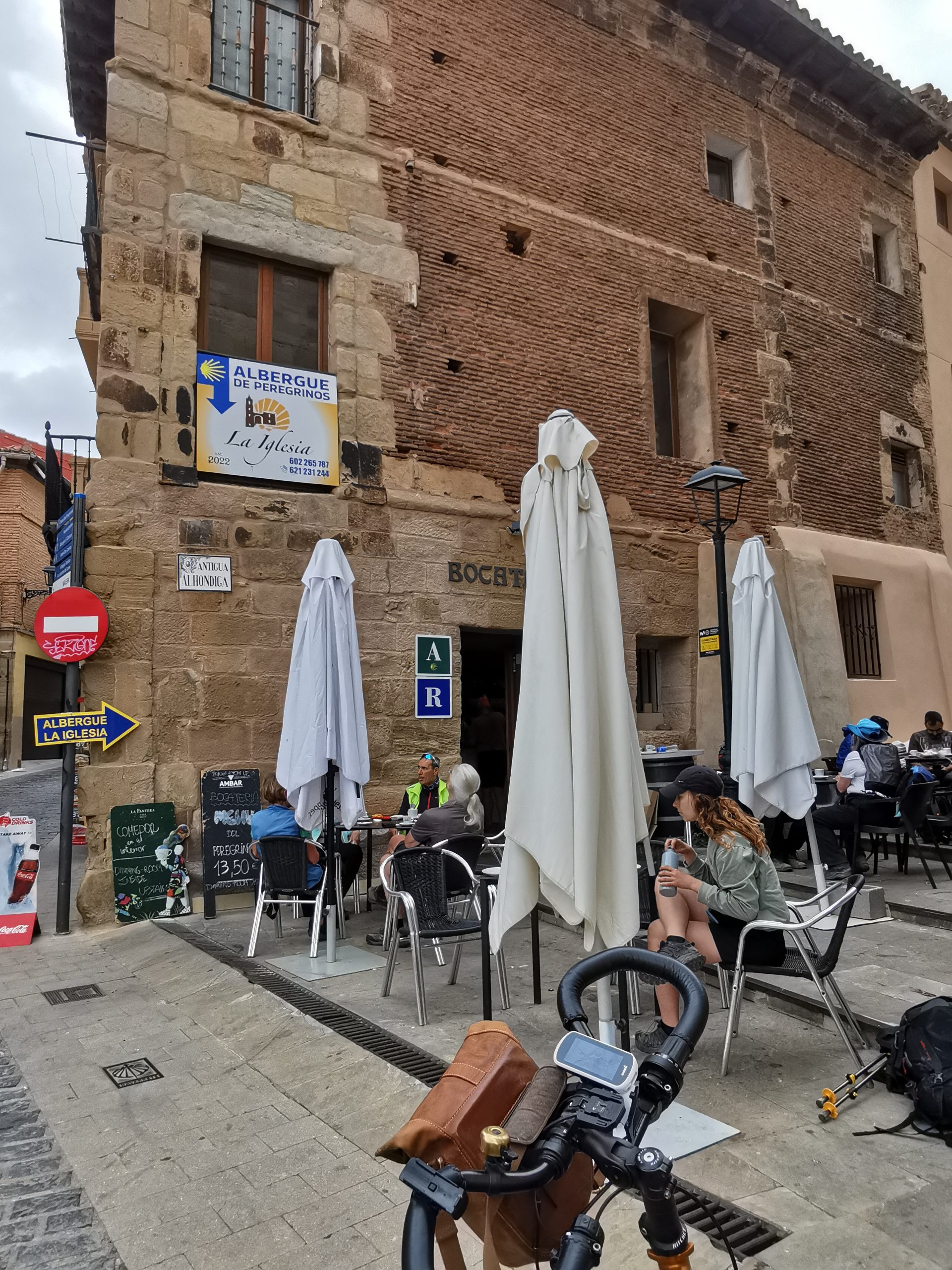 Nach all den Wetterkapriolen tut ein sonniger Tag mit Rückenwind auch mal gut. Ganz ohne Anstrengung ist der Tag dann doch nicht, Richtung Estrella und Ayegui, unserem Übernachtungsort, geht es noch einmal ordentlich nach oben. Das viel gelobte Restaurant hat heute geschlossene Gesellschaft, Spanier aus Dortmund, deren Kinder die Erstkommunion feiern (und die Wahldortmunder den Sieg über Augsburg, den wir gemeinsam auf Christophs Tablet schauen, dem Mann mit den vielen Sportaccounts).