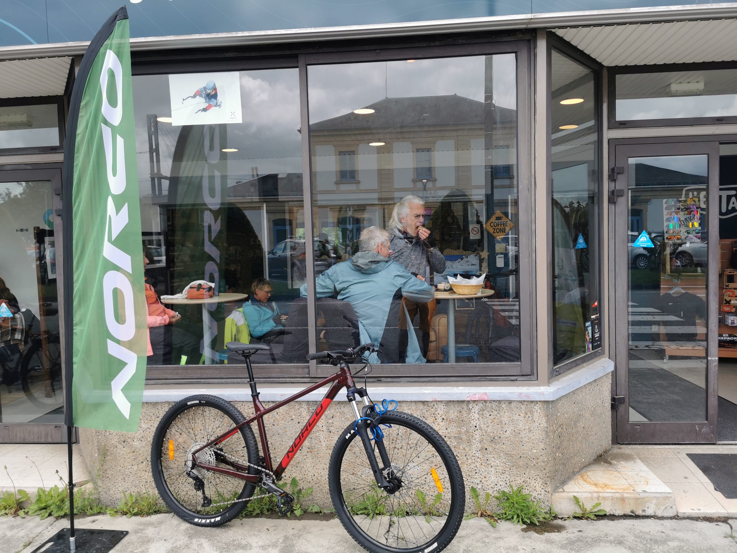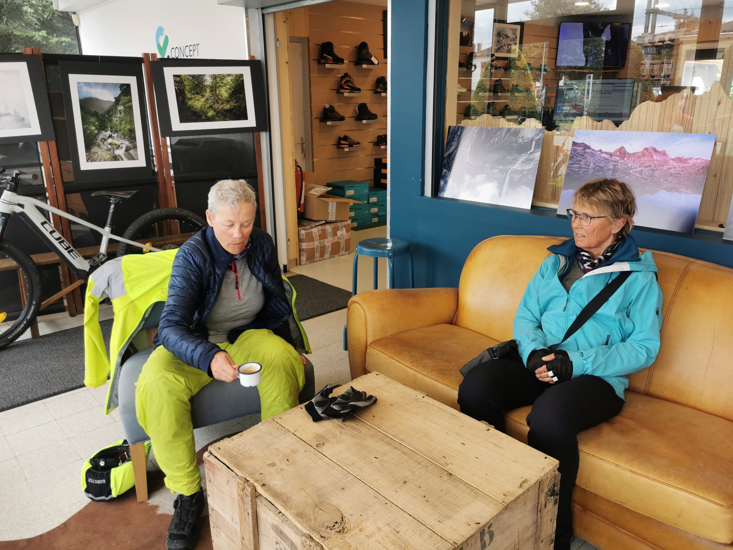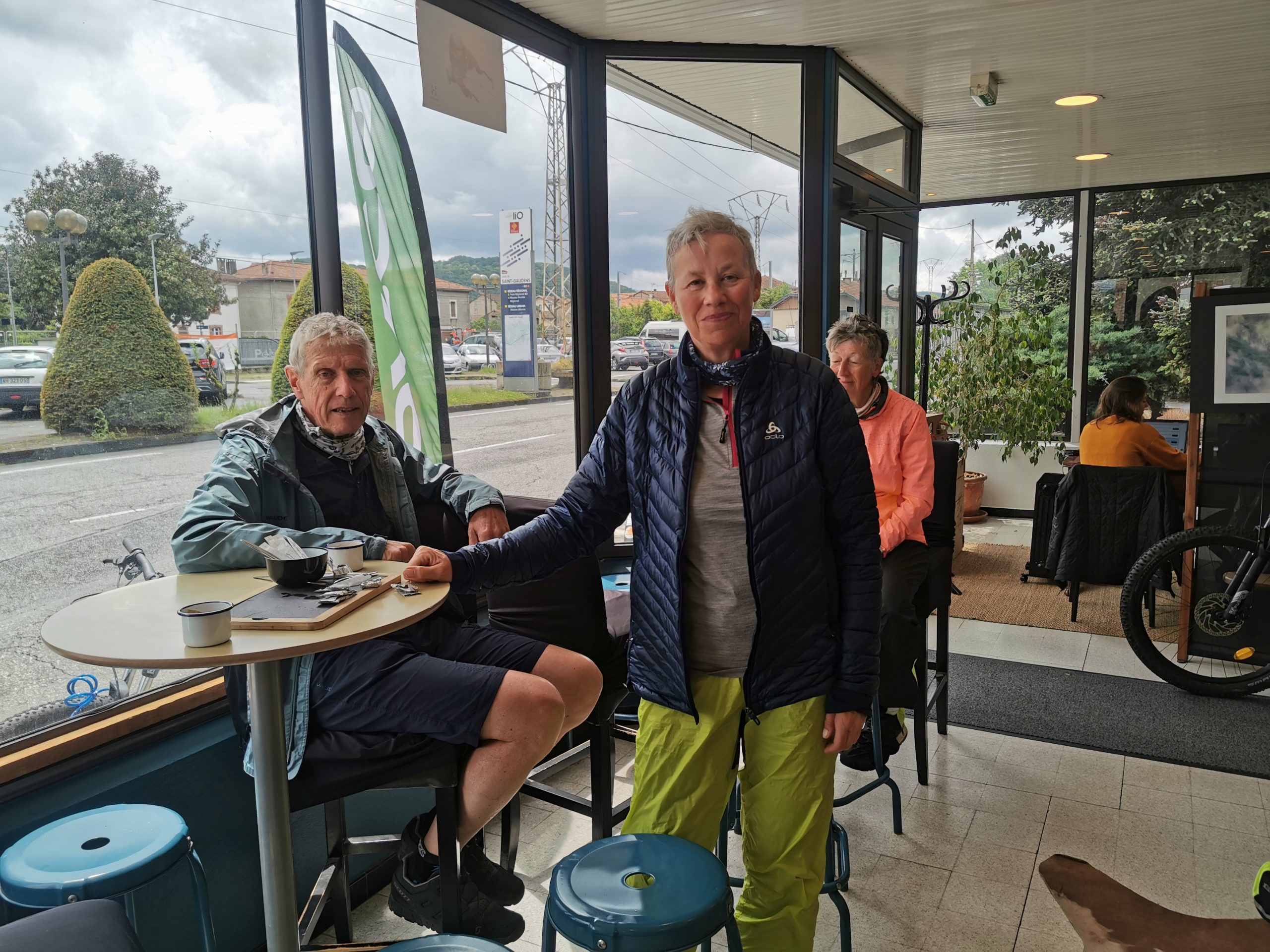 Von der Strecke nach Lannemezan ist uns vor allen Dingen der grandiose Picknikplatz in Erinnerung geblieben. Und der Snack in einem Fahrradladen, der gleichzeitig als Café dient und die bisher beste Salami der Tour auftischte. Leckeren Espresso gab es auch. Und eine Menge Regen auf der Etappe, der den Spaß ein wenig begrenzte. Immerhin kommen wir trocken im Hotel an. Pyrenäen-Blick wünscht sich Stefanie. Hat sie bekommen!