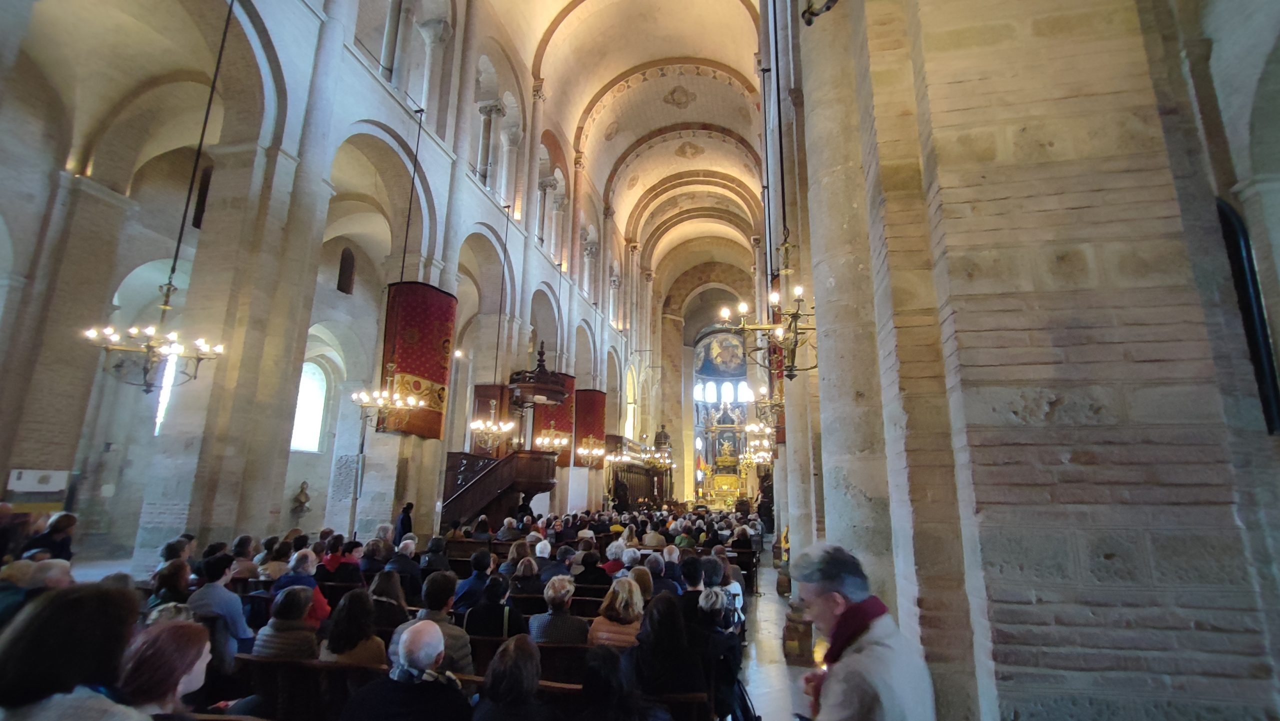 Pünktlich um 15 Uhr sind jedenfalls alle eingetroffen und so werfen wir zunächst einen Blick in die seltsam verbaute und dadurch kuriose Kathedrale. Ein Spaziergang führt vorbei an gut erhaltenen Gebäuden aus verschiedenen Epochen und hübsch angelegten Plätzen zur alten Pilgerkirche Saint Cernin, Frankreichs Kirche mit den meisten Reliquien aus Antike und Mittelalter. Insgesamt zählt man 175, darunter angeblich – so behaupten die Toulousaner – auch die des Heiligen Jakobus. Im 12. Jahrhundert gab es darüber natürlich einen heftigen Streit mit Santiago de Compostela, was den dortigen Erzbischof zu dem Ausspruch „Das kann doch nicht der wahre Jakob sein“ verleitete.
