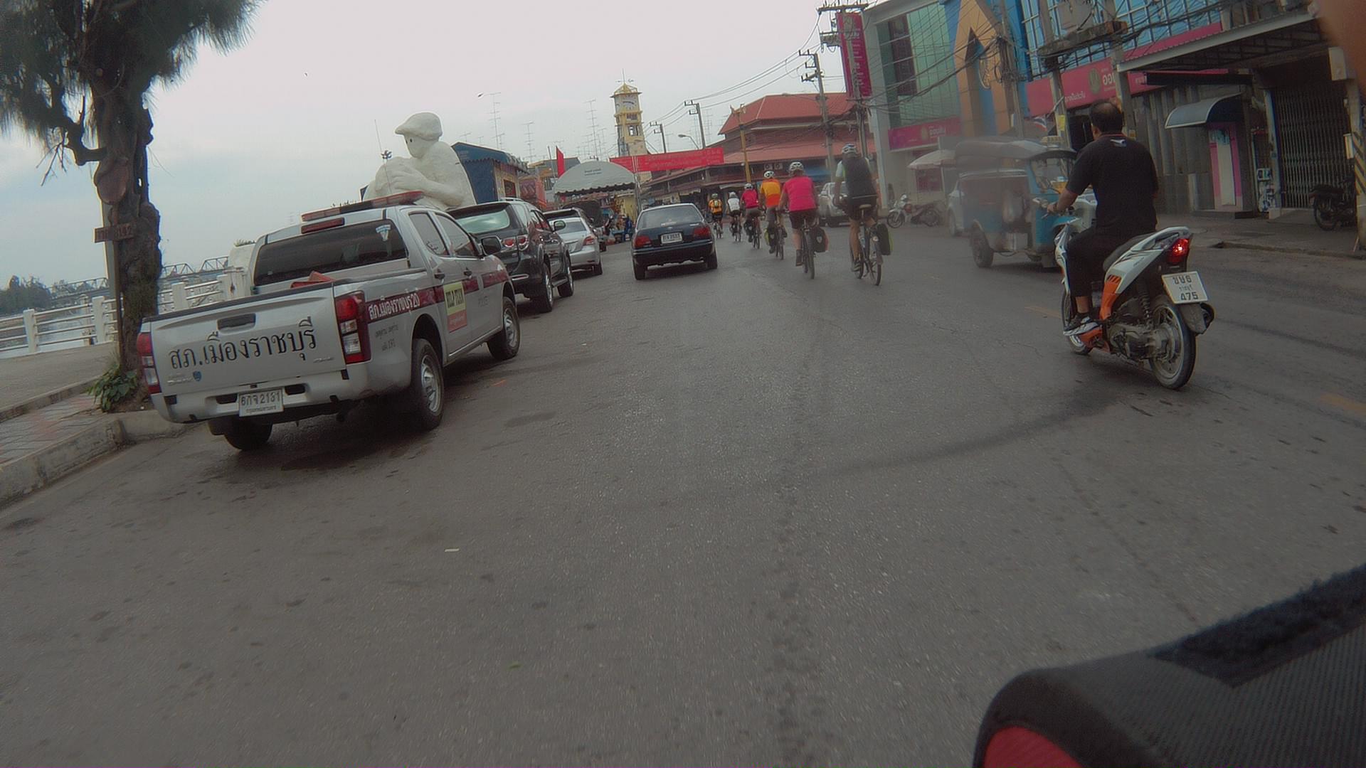 Der Tag heute begann mit einem Radel-Stretching-Programm, das unsere thailändischen Guides einforderten, damit wir fit für die lange Strecke waren.