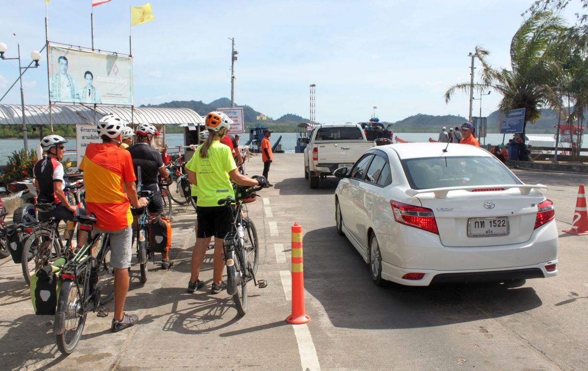 Die ersten 40 Kilometer von Krabi in Richtung Osten boten allerdings keine Alternative als die Hauptstraße Nr. 4. Durchgängig vierspurig, laut und schnell. Das brauchten verständlicher Weise nicht alle von uns. Danach aber ging es gemächlich weiter durch Landstraßen bis man zum Fähranleger kam.
