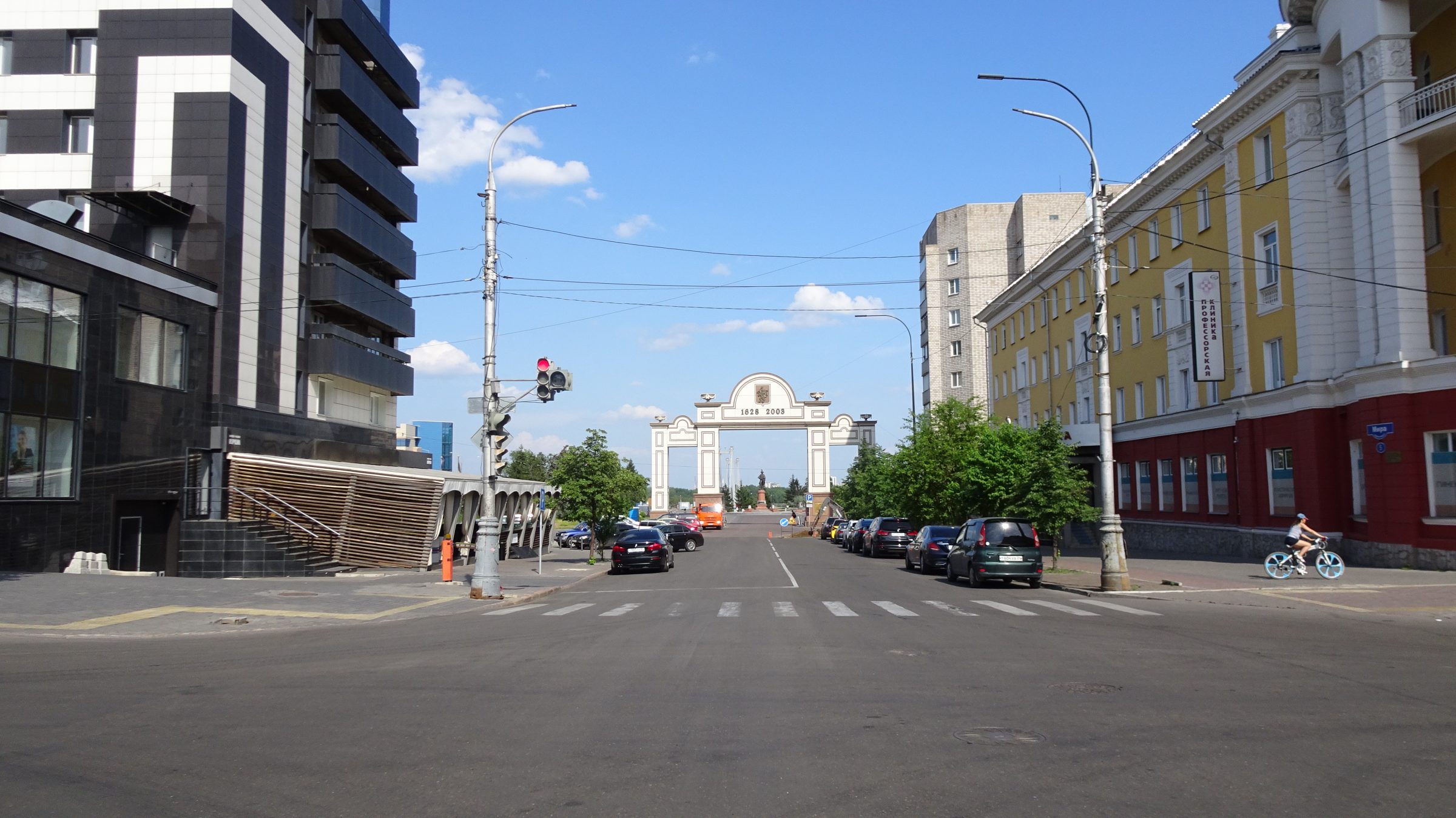 Das 4-Sterne-Hotel „Oktober“ (гостиница Октябрьская), in dem wir „residieren“, steht am Prospekt Mira. Das ist hier die Haupteinkaufsstraße. Sie wurde schon fünfmal umbenannt, weiß Wikipedia: „Zuerst hieß sie Große Straße, dann Woskressenskaja-Straße – nach dem Namen der ersten steinernen dreistöckigen Woskressenskaja-Kirche, die auf der Strelka in der Mitte des 19. Jahrhunderts errichtet wurde. Nach dem Ersten Weltkrieg war sie die Sowjetische Straße, später hatte sie den Namen Stalin-Prospekt und heute heißt sie Prospekt Mira („Allee des Friedens“)“.