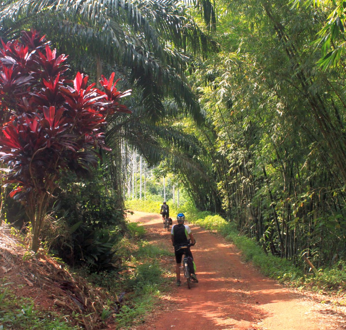 Auf der Erkundung bin ich das 23%-Stück mit 20 kg Gepäck gefahren, bzw. habe es geschoben. Da ging mir schon der eine oder andere Flucht über die Lippen! Die nächste Berge gibt es aber erst in Malaysia!