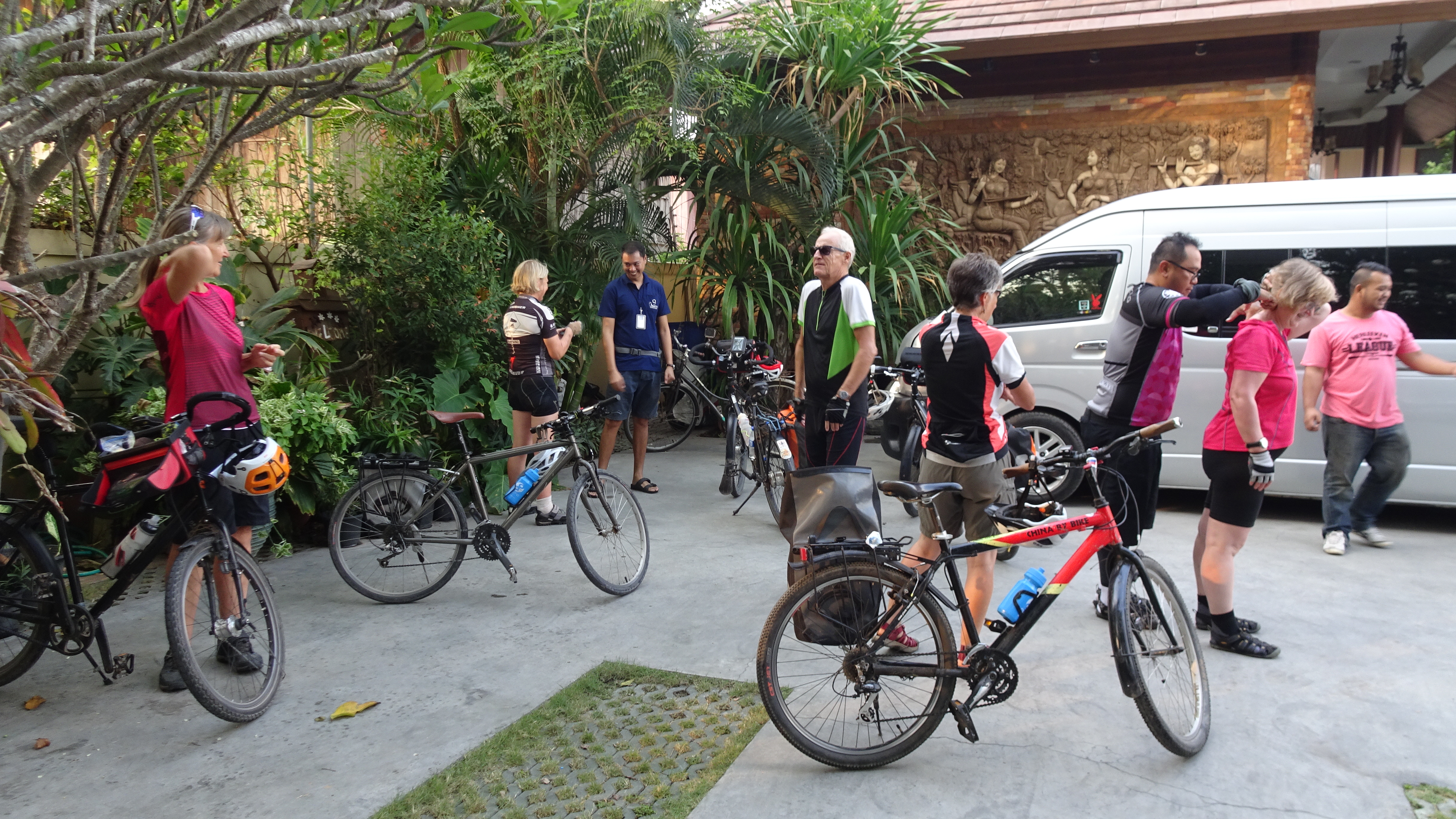 Also erst einmal zum Fahrrad, das von allen Tourerfahrenen aber auch von unseren thailändischen Guides gleich fachmännisch unter die Lupe genommen wurde. Allgemeines Lob für Tout Terrain, die mir wirklich die neueste Technik geliefert haben. Das fährt ja fast von allein. Ich muss nur noch treten. Die zwei Schalthebel für die Rohloff-Speedhub sind Klasse.
