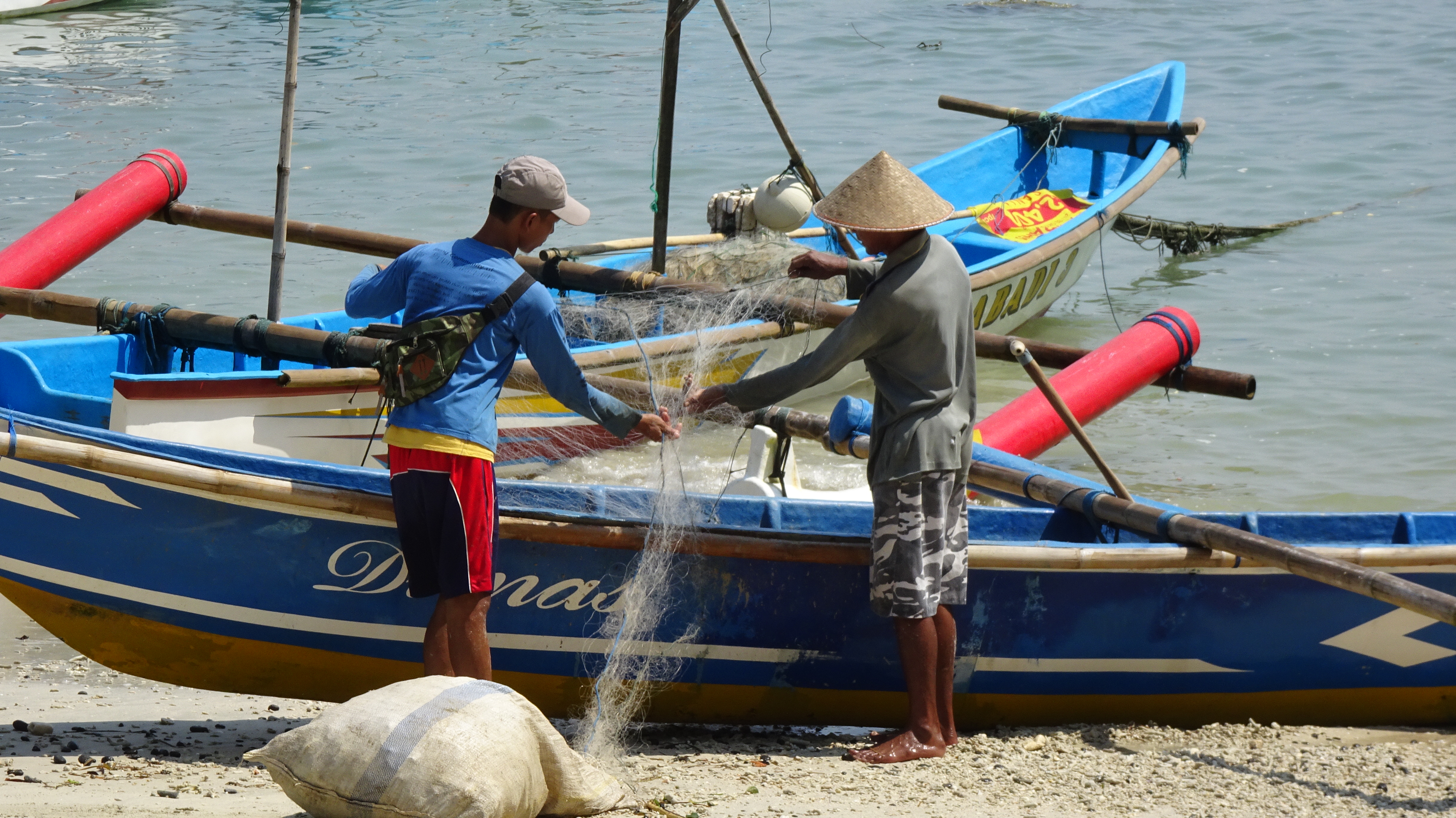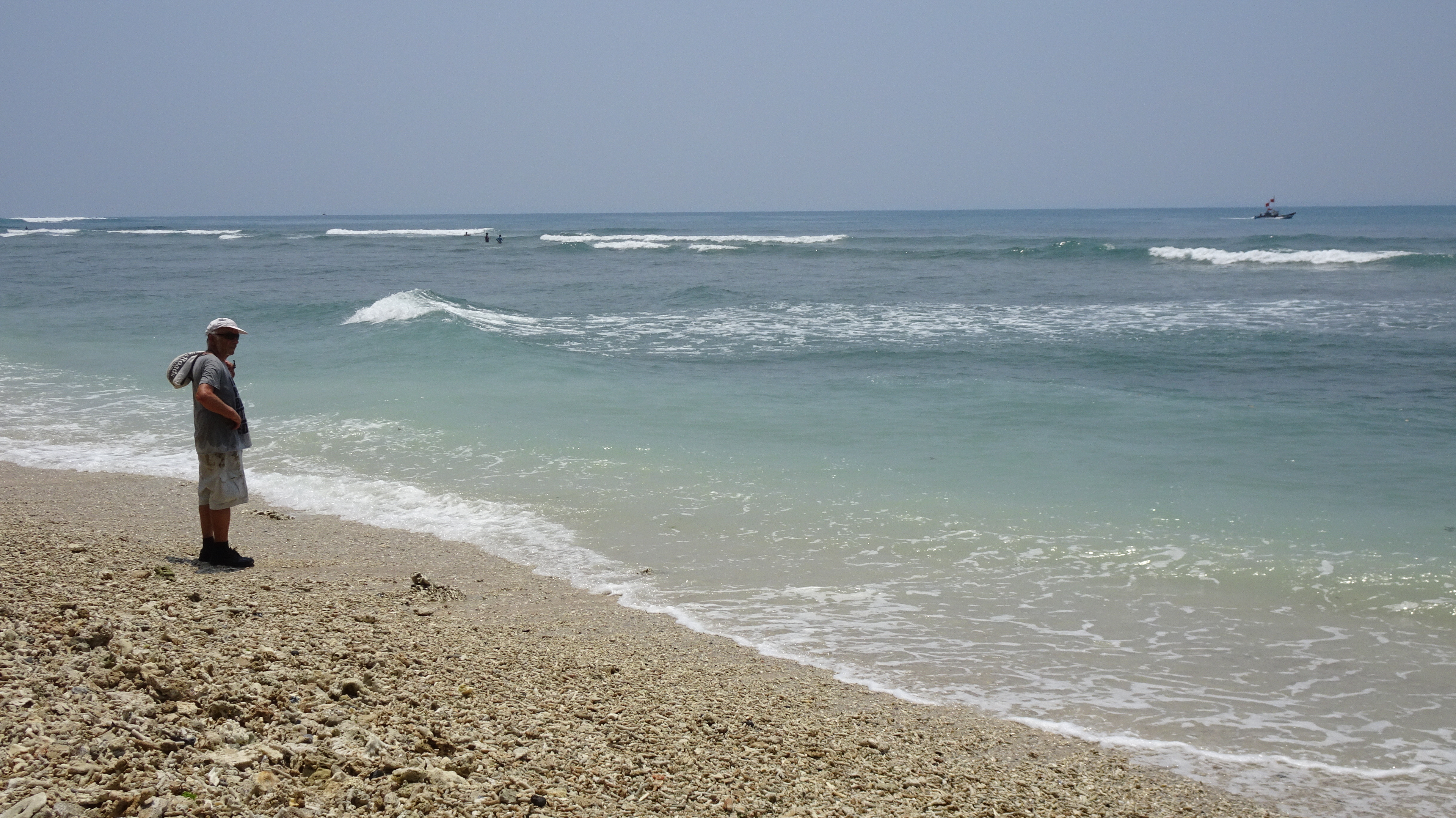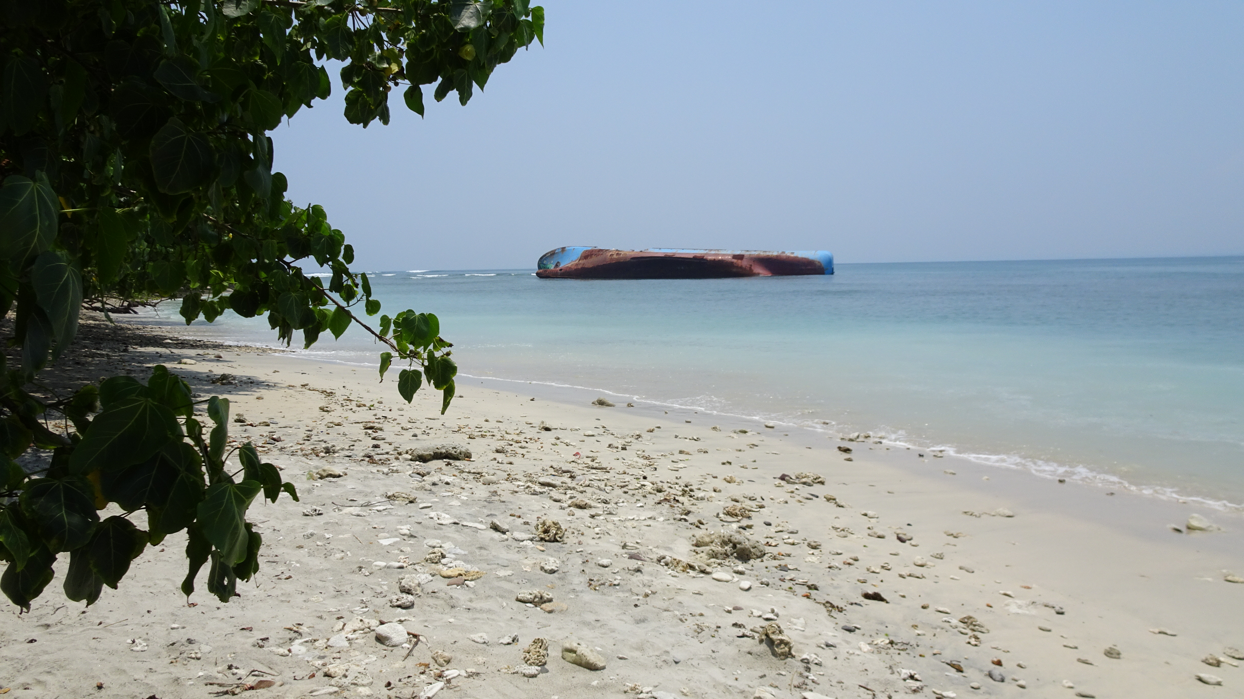 Ein Blickfang neben den Wellen und dem Wasser am „weißen Strand“ ist ein nicht gerade kleines Fischerboot, welches illegalen Fischfang betrieb und dessen Motor 2015 gesprengt wurde. Jedenfalls nehme ich an, daß es selbiges ist, denn seid dem Tsunami wird es wohl auch nicht da herumliegen.
