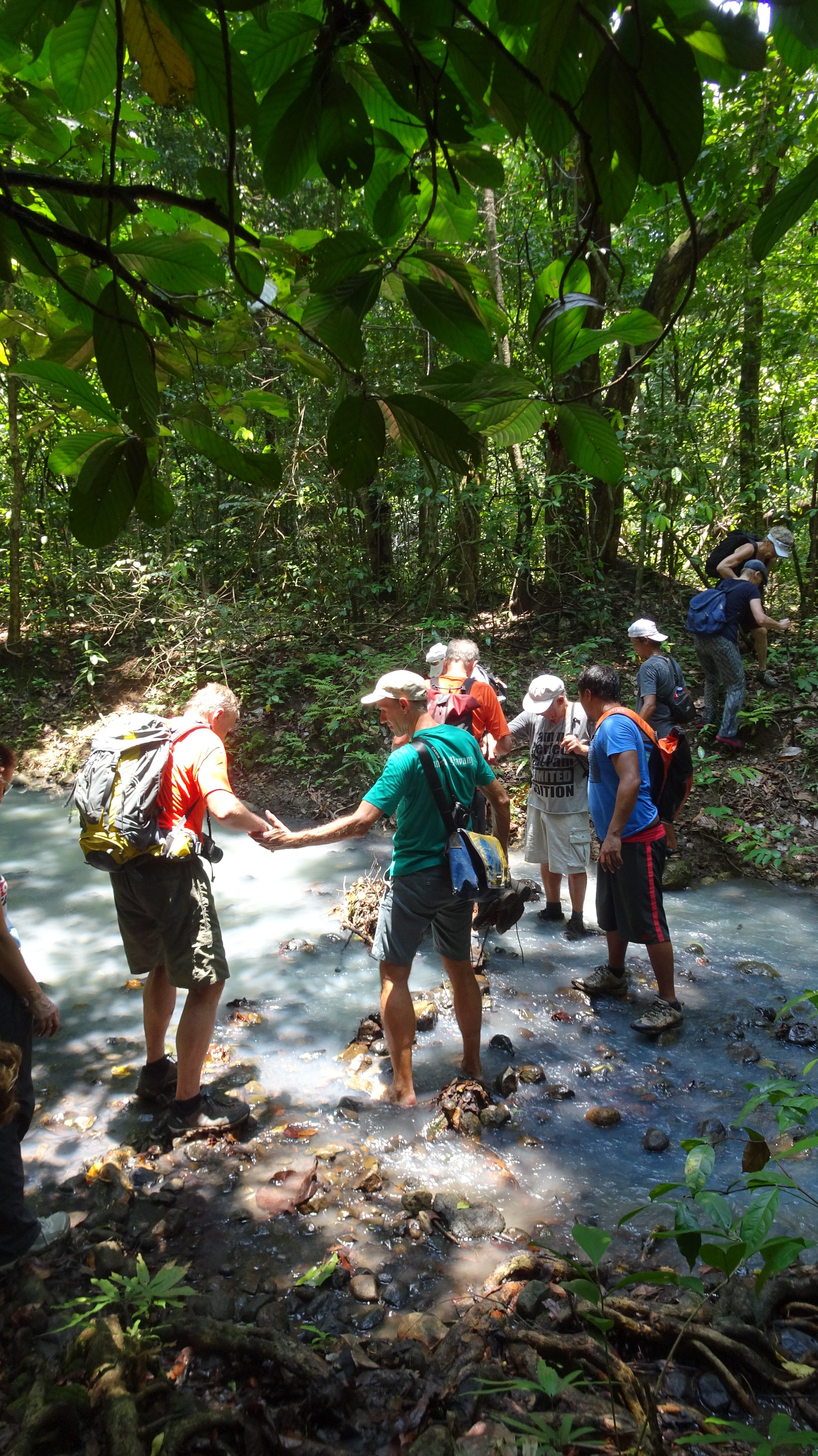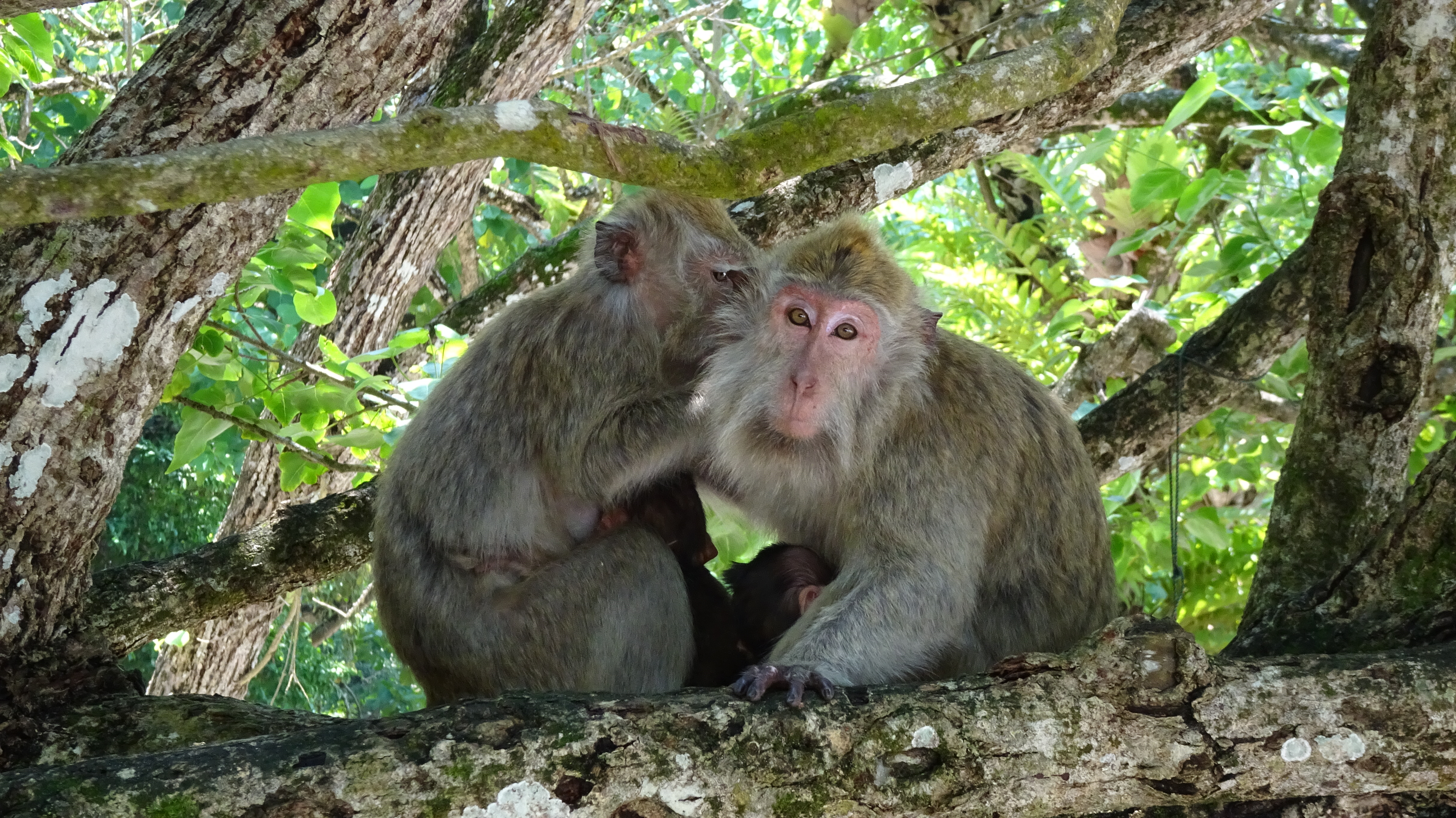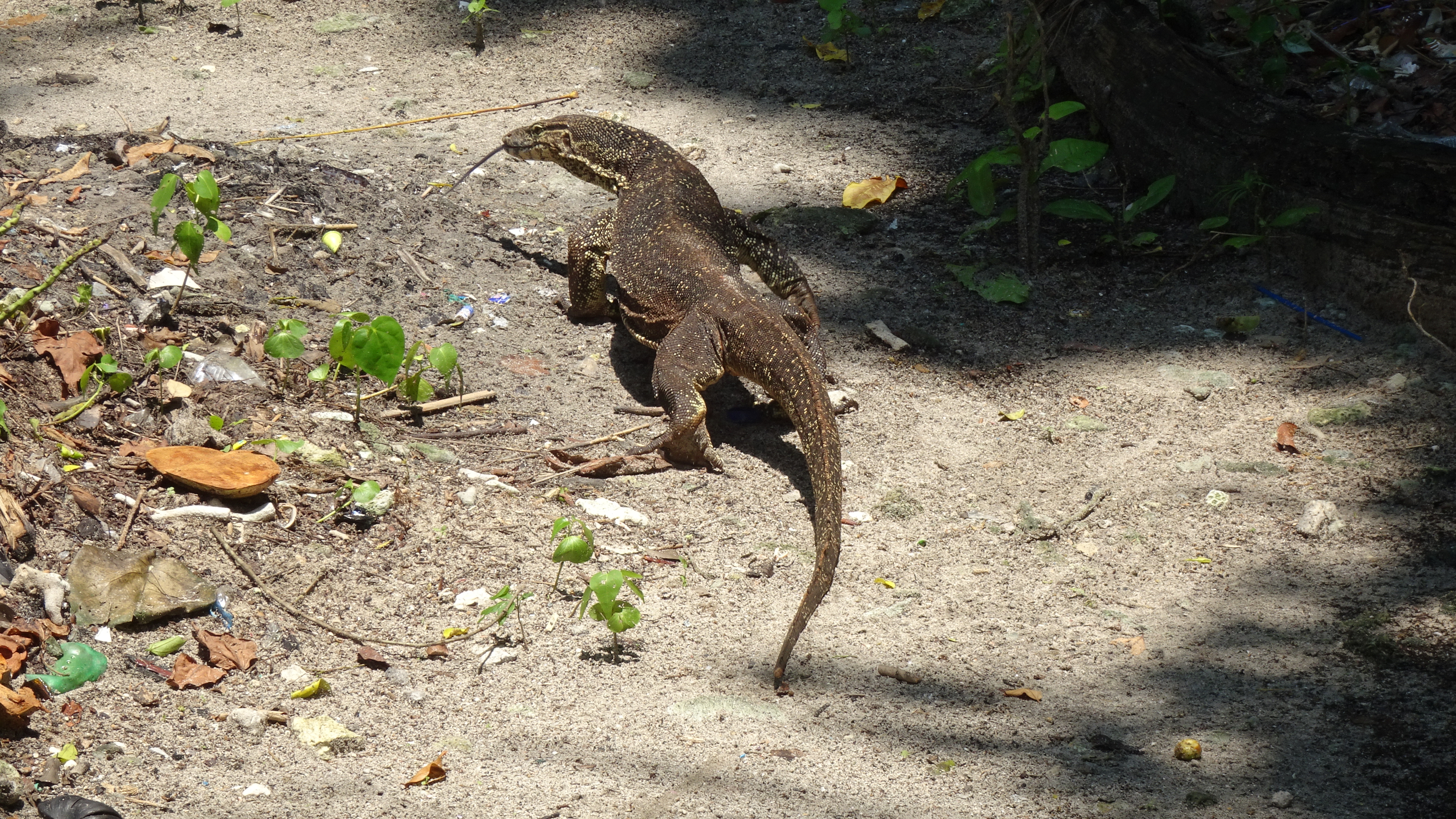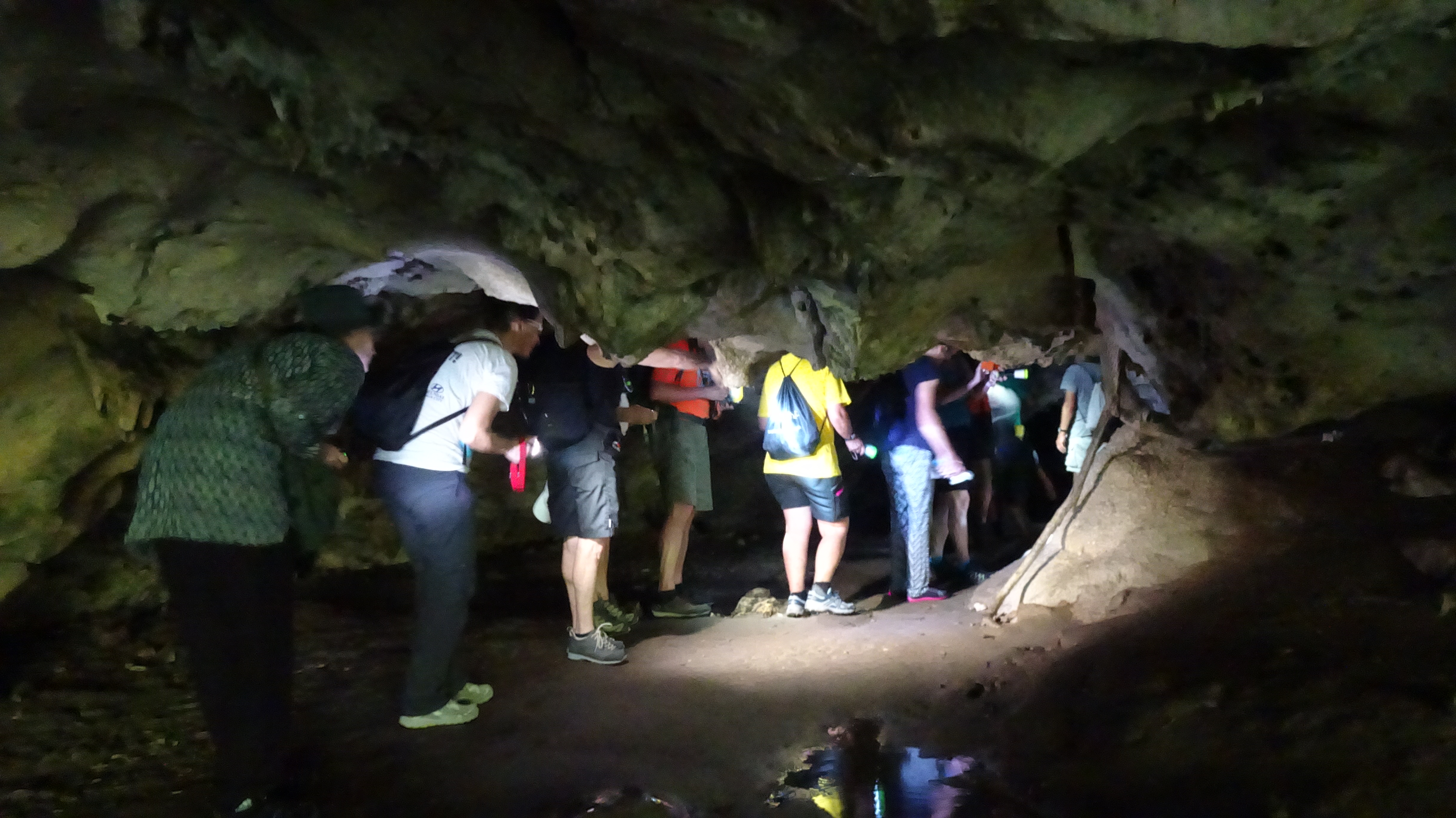 Auf unserem Weg durch eine Höhle (wohl vor langer langer Zeit vom damals höheren gelegenen Meer „geschaffen“) und durch ein Stückchen des öffentlich zugänglichen Tropenwaldes lernen wir eine Menge interessantes über die Tiere, die Bäume (viel Teak!) und die Pflanzenwelt um uns herum. Bei den drollig anzusehenden Affen um uns herum beschleicht mich ein wenig ZOO-Gefühl, nur andersrum, d.h die Affenbande „bestaunt“ uns. Die Affen sind friedlich aber man sollte trotzdem auf seine Klamotten aufpassen und schon gar nicht vor ihren Augen in Rucksack oder Tasche kramen …