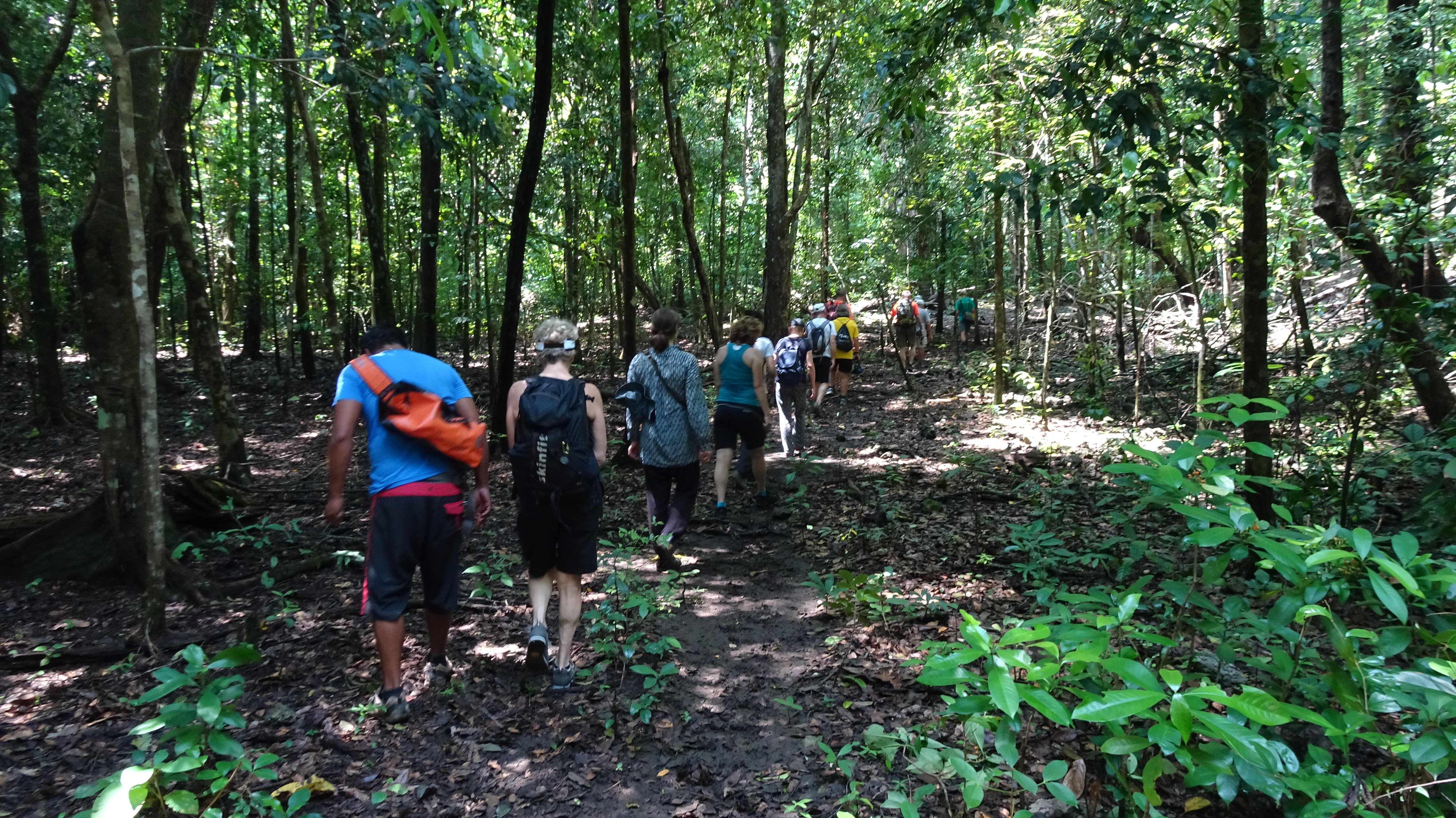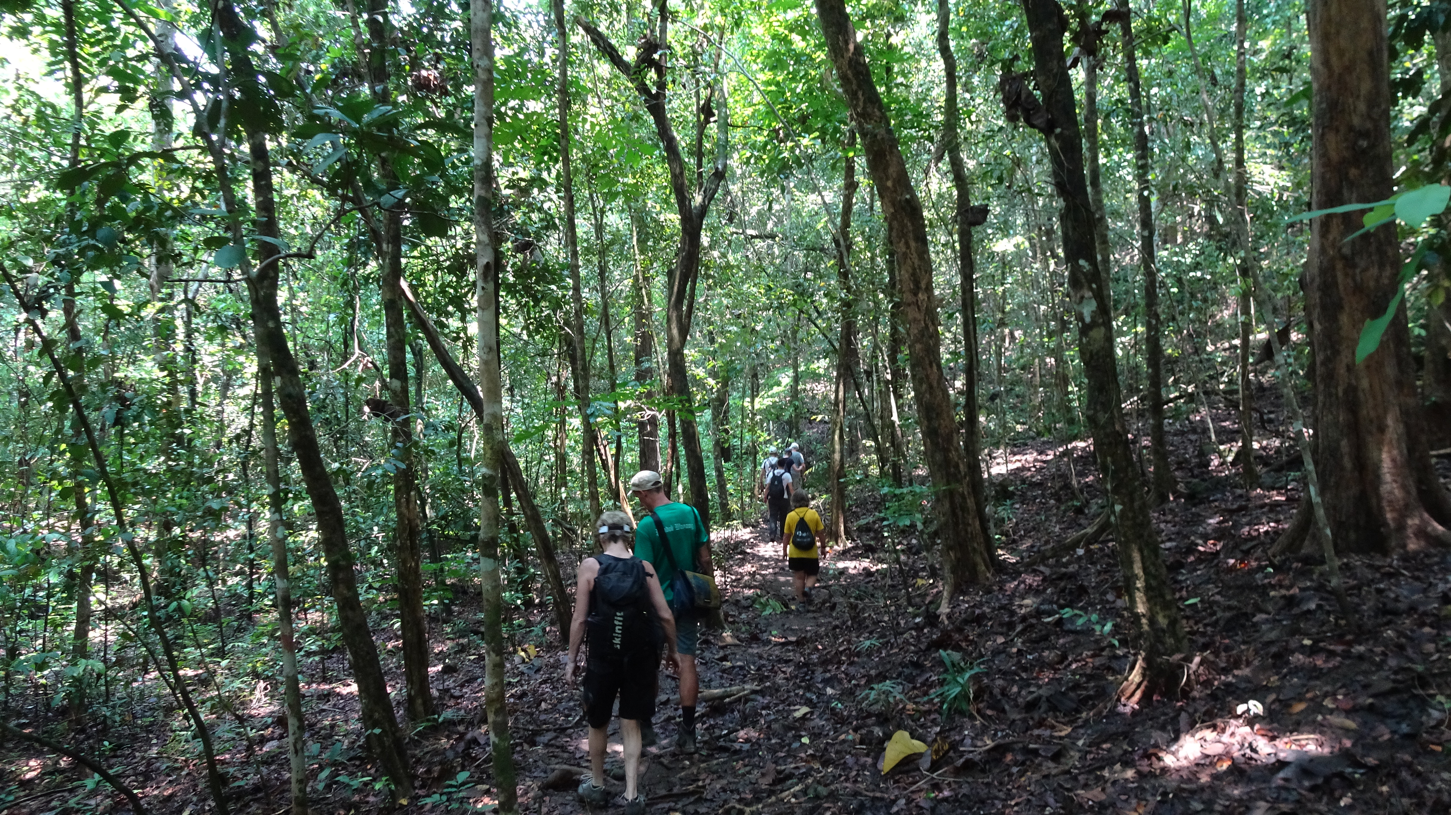 Wanderung im Naturpark Pangandaran am 332. Radweltreisetag, tropisch-winterlich schwülheiß bei > 30 °C