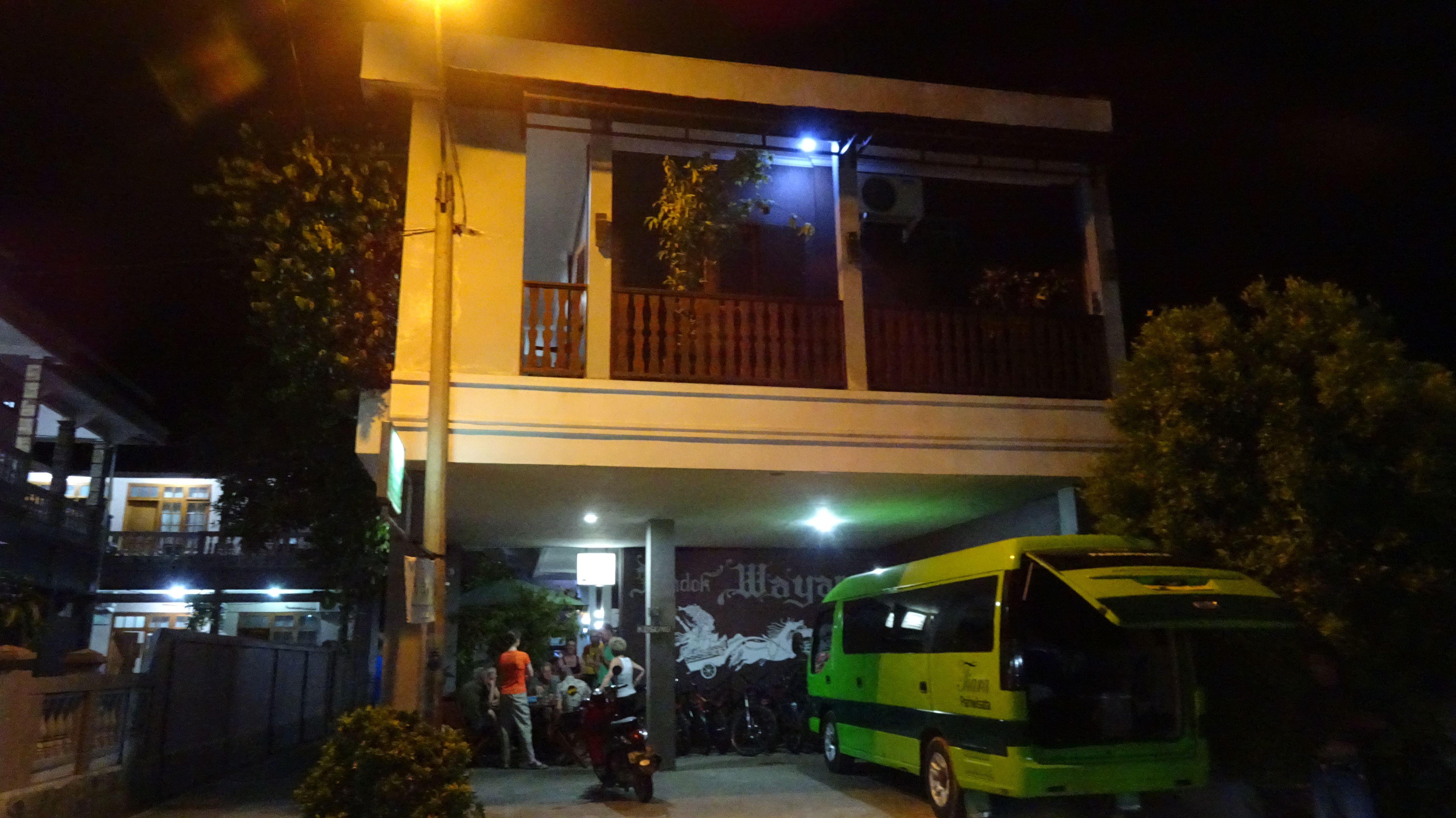 Das „Pondog WAYANG“ ist ja so ein typisches Radweltreisemehralseinenachthotel. Gehobene Backpackerhostelklasse, Duschkopf schräg über der Keramik und nur normales umweltwarmes Duschwasser – naja, alles relativ, bei Umgebungstemperaturen von 25° C und höher – da wäre ein Durchlauferhitzer fast dekadenter Luxus. 😉