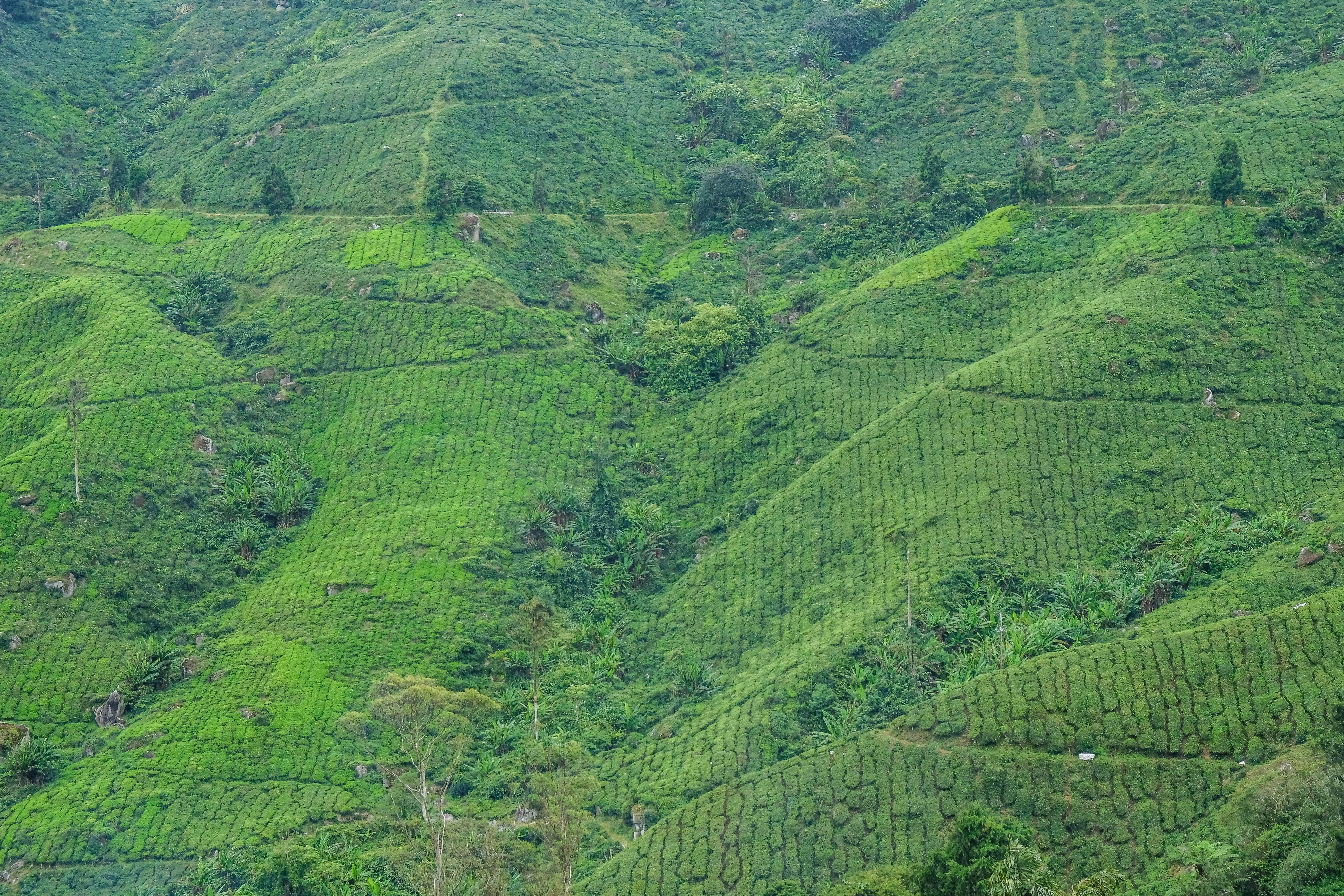 Family 2 (Astrid, Heike, Eckhart, Peter und Andres) macht eine einfachere Wanderung durch den Bergdschungel. Erst an einem Fluss entlang dann dann dem Hang entlang hinunter Richtung Felder und „Boh Tea Plantation“. Nach etwas über einer Stunde verlassen wir den Dschungel und erreichen Gemüsefelder. Später auf der „Boh Tea Plantation“ beginnt ein leichter Sprühregen der aber nie wirklich stark wird. Die Aussicht ist toll und nach einem Tee fahren wir mit dem Bus zurück ins Hotel.