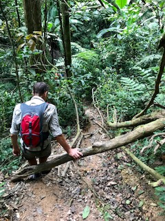 ( Bilder u. Text von Maria) Ein Teil der Gruppe – Gerhard, Beat und Maria haben sich für einen ca. 8 km langen Trail durch den Regenwald entschieden. Es ging auf einen Rundweg etwa 500m bergauf und natürlich wieder bergab. Am Anfang beim Aufstieg war der Weg schmal und steil so dass man über Wurzeln und Baumstämme klettern musste und teilweise die Hände mitbenutzen musste um sich an den Wurzeln hoch zu ziehen. Der Pfad wurde dichter und dichter, und führte uns durch den Regenwald vorbei an mit Moos bewachsenen großen Bäumen, wunderschönen riesengroßen Farnen und zwischendurch hörte man Tierstimmen die wir aufgrund von exotischer Fremdheit gar nicht zuordnen konnten. Der Abstieg war am Anfang noch etwas schmal und steil, es ging dann aber zusehends in einen angenehm zu laufenden Trail über. Es war eine tolle und spannende Wanderung 😊. Ein toller Tag.