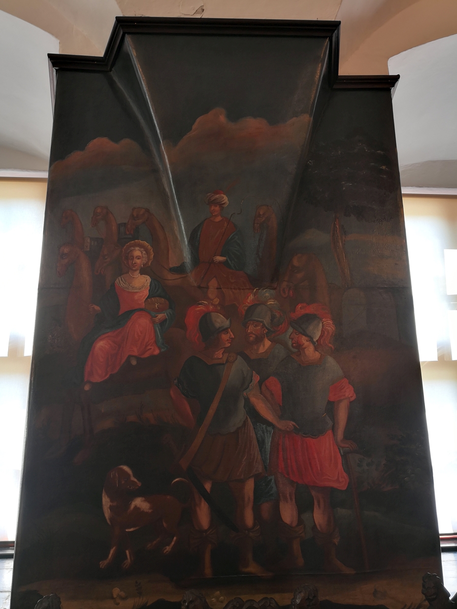 Denn wir werden schon ein wenig vom Rückenwind verwöhnt. Auch heute, zumindest bis zur Mittag. In Chelmno recken wir die Nasen in die Sonne, ein Riesenbaguette in den Mund und lenken dann die Schritte in das Rathaus der Stadt, das durchaus spannende Exponate wie historische Osterpostkarten, und, nun ehrlich gemeint, tatsächlich ziemlich außergewöhnliche Wandmalereien ausstellt.