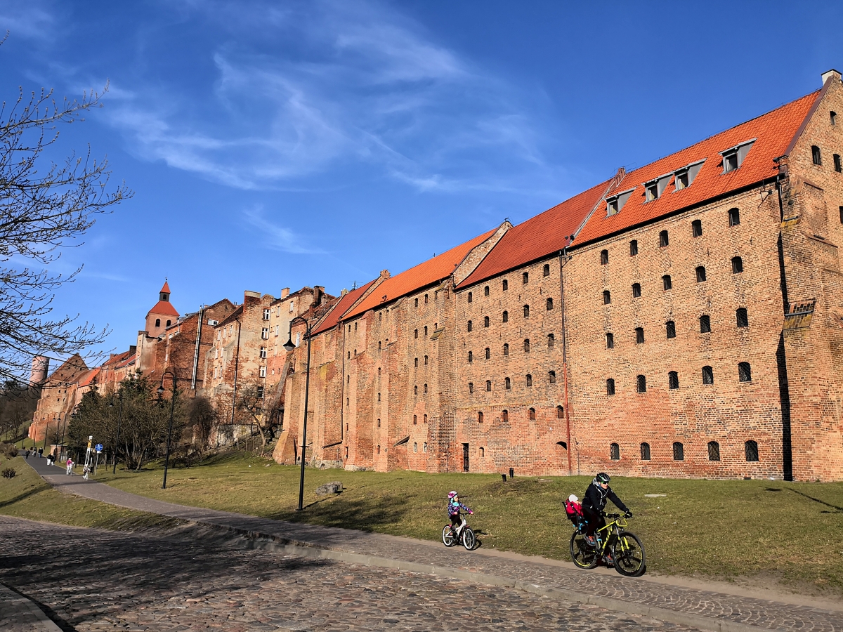 Unser Ziel, Grudziadz, älteren Lesern noch als Graudenz bekannt, liegt so einladend in der Abendsonne, dass wir Duschen und Schmutzbier gegen eine kleine Stadtbesichtigung eintauschen, den neu gestalteten Schlossturm erklimmen, uns gegen die Weichsel verneigen und dann Schmutzbier und Abendessen ungeduscht vereinigen.